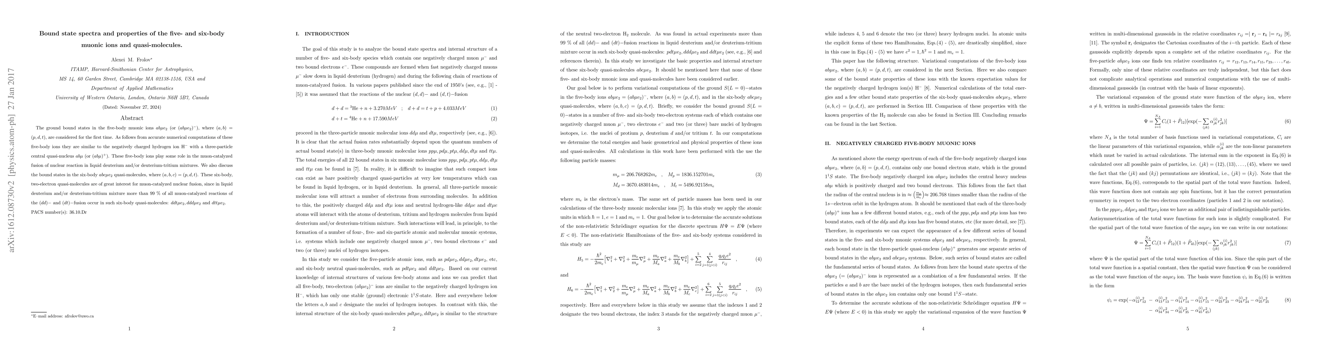 The ground bound states in the five-body muonic ions $a b \mu e_2$ (or $(a b \mu e_2)^{-}$), where $(a, b) = (p, d, t)$, are considered for the first time. As follows from accurate numerical computations of these five-body ions they are similar to the negatively charged hydrogen ion H$^{-}$ with a three-particle central quasi-nucleus $a b \mu$ (or $(a b \mu)^{+}$). These five-body ions play some role in the muon-catalyzed fusion of nuclear reaction in liquid deuterium and/or deuterium-tritium mixtures. We also discuss the bound states in the six-body $a b c \mu e_2$ quasi-molecules, where $(a, b, c) = (p, d, t)$. These six-body, two-electron quasi-molecules are of great interest for muon-catalyzed nuclear fusion, since in liquid deuterium and/or deuterium-tritium mixture more than 99 \% of all muon-catalyzed reactions of the $(dd)-$ and $(dt)-$fusion occur in such six-body quasi-molecules: $d d t \mu e_2, d d d \mu e_2$ and $d t t \mu e_2$.