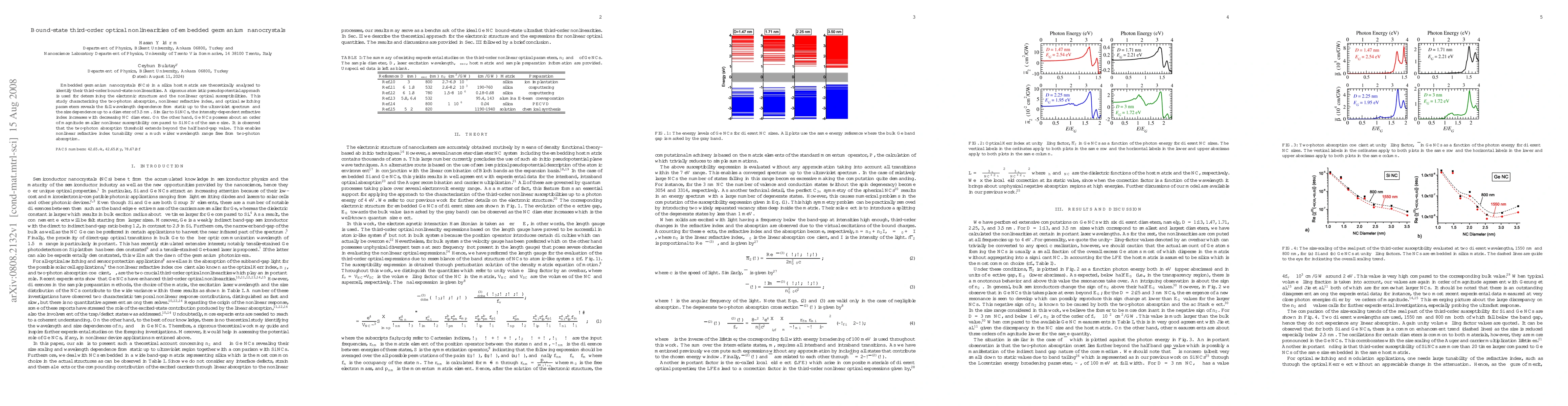 This study investigates the third-order optical nonlinearities of germanium nanocrystals embedded in silica, revealing significant size and wavelength dependence of two-photon absorption and nonlinear refractive index. Ge NCs show an order of magnitude lower nonlinear susceptibility compared to Si NCs, with tunable refractive index over a broad spectrum.