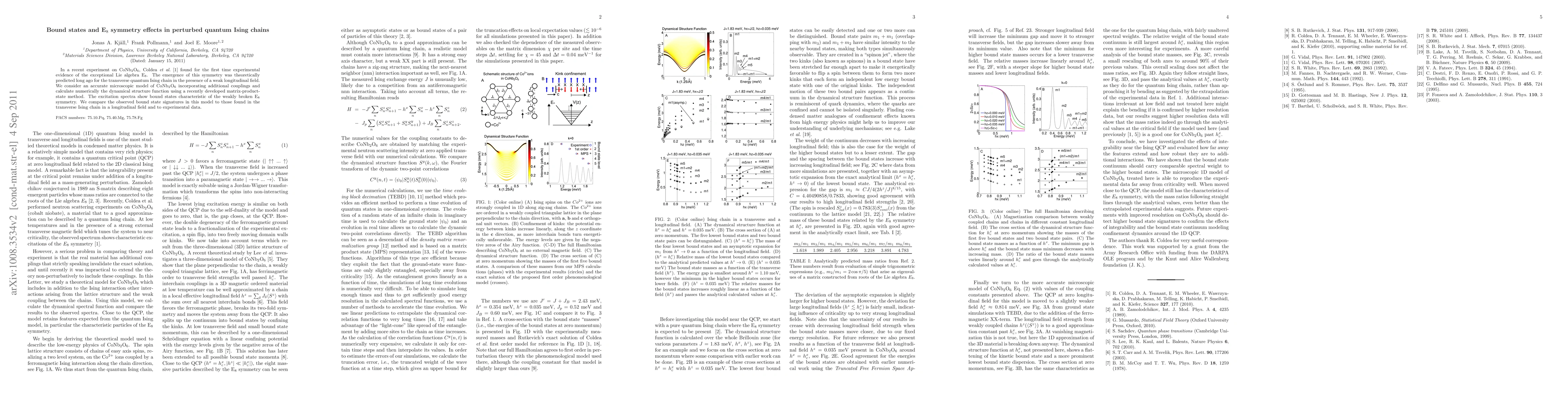 Researchers study a material exhibiting E_8 symmetry effects, predicting bound states in a quantum Ising chain with additional couplings, comparing to experimental data.