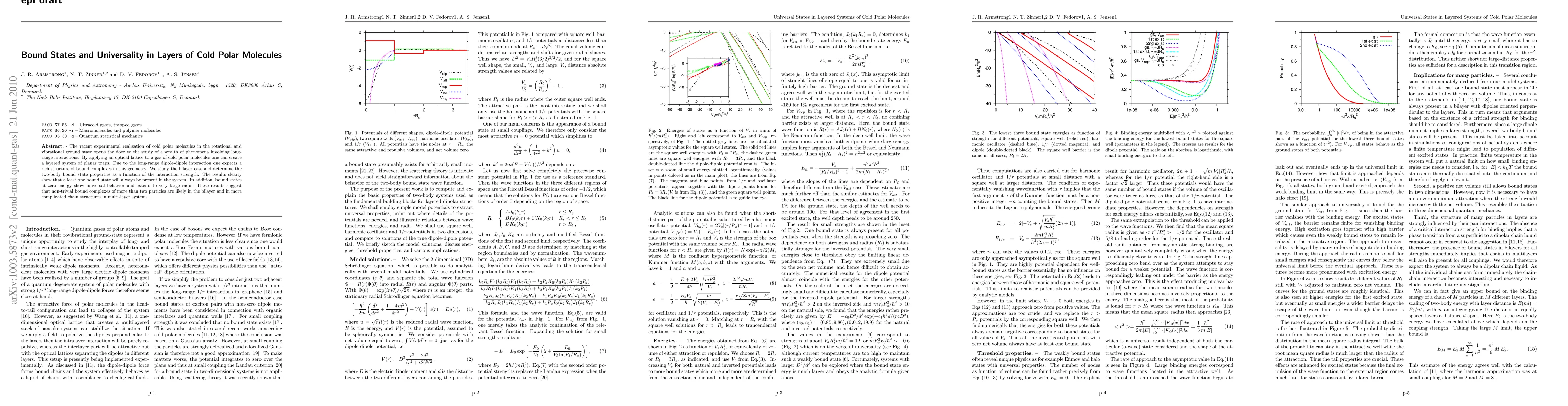 This paper investigates the bound states in layered systems of cold polar molecules confined in optical lattices, revealing the presence of at least one bound state across varying interaction strengths. It finds universal behavior in bound states at zero energy, suggesting the potential for complex multi-particle interactions in multi-layer systems.