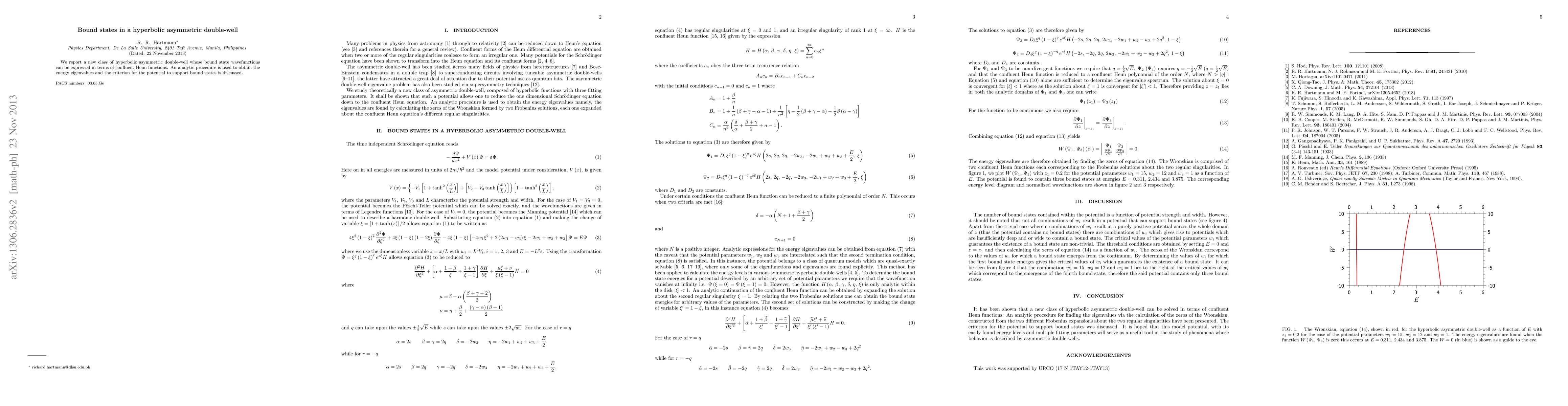 We report a new class of hyperbolic asymmetric double-well whose bound state wavefunctions can be expressed in terms of confluent Heun functions. An analytic procedure is used to obtain the energy eigenvalues and the criterion for the potential to support bound states is discussed.