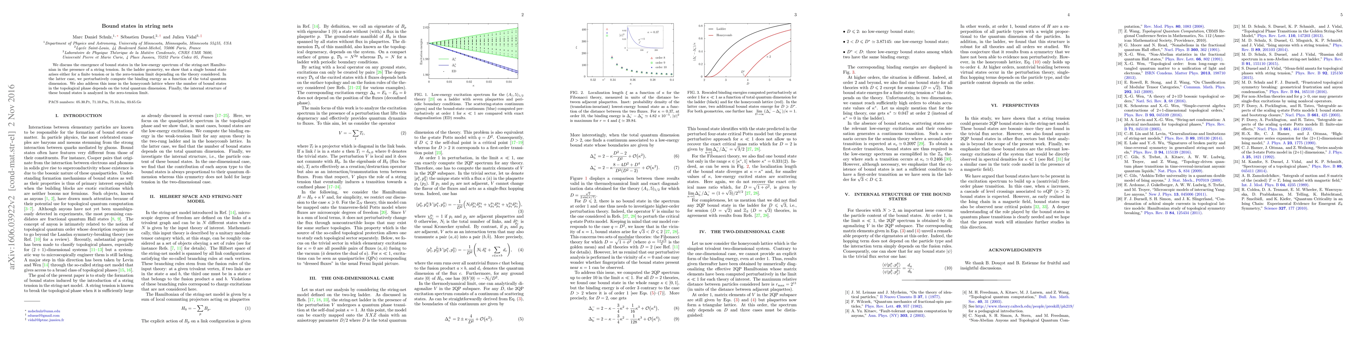 This paper explores bound states in the low-energy spectrum of string-net Hamiltonians, revealing a single bound state in ladder geometries under finite or zero string tension. The study also examines the honeycomb lattice, showing that the number of bound states in the topological phase correlates with the total quantum dimension.