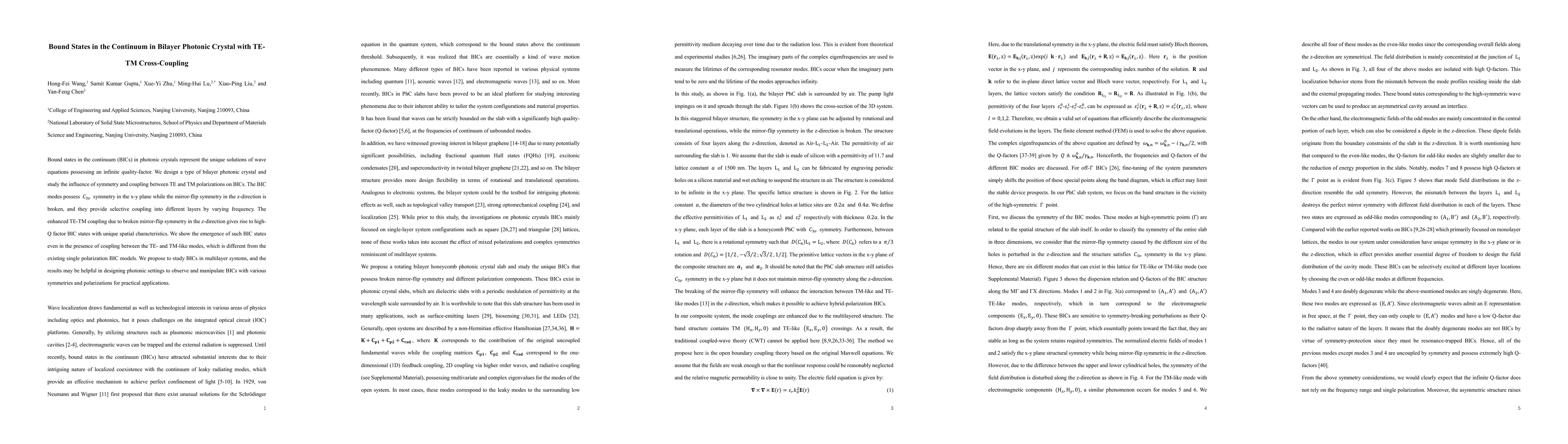 This paper investigates the emergence of bound states in the continuum (BICs) in bilayer photonic crystals, focusing on the influence of TE-TM cross-coupling and symmetry breaking. The study reveals high-Q factor BIC states resulting from enhanced TE-TM coupling due to broken mirror-flip symmetry, offering unique spatial characteristics and potential for practical photonic applications.
