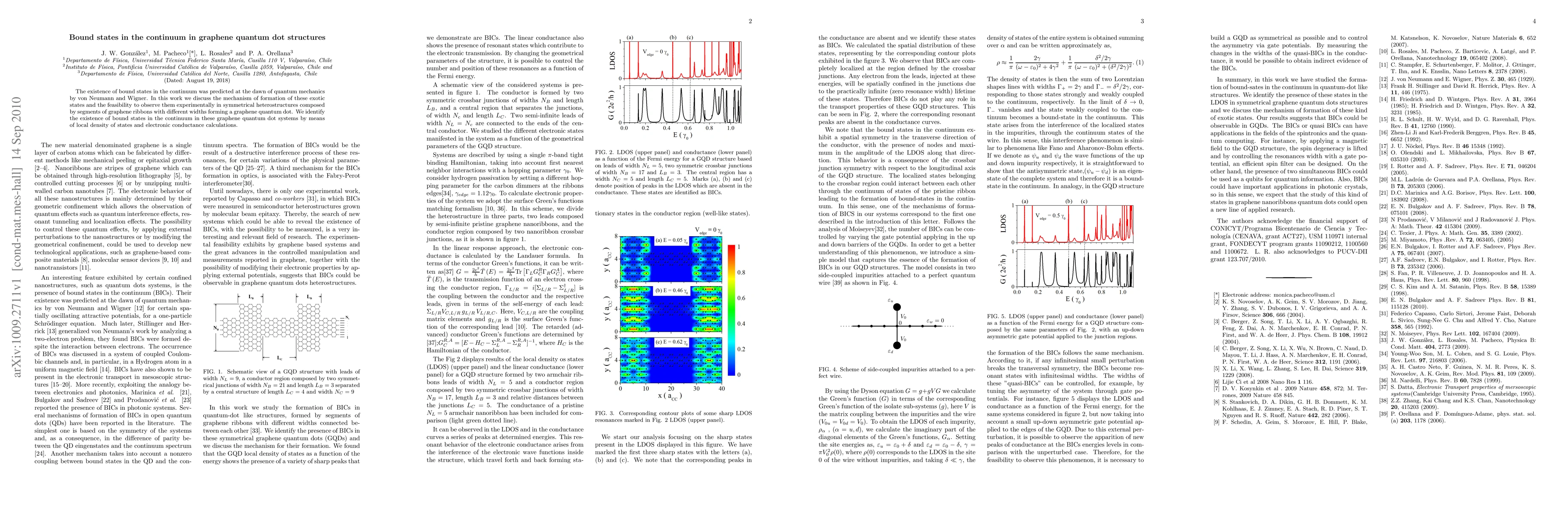 This paper investigates the formation and observability of bound states in the continuum in graphene quantum dot structures, demonstrating their existence through local density of states and electronic conductance calculations in symmetrical heterostructures composed of varying width graphene ribbons.