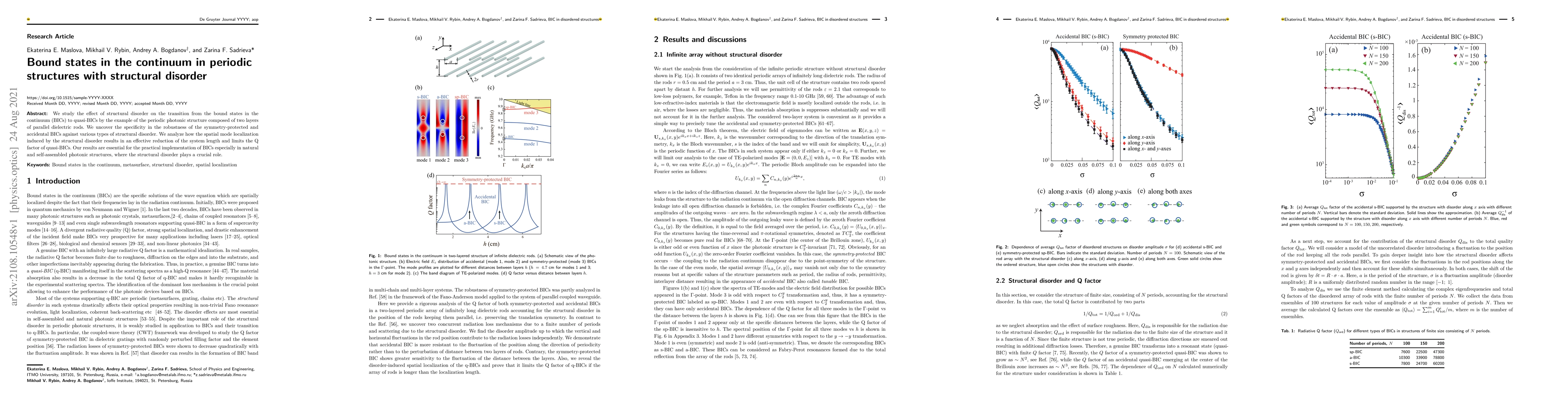This paper investigates how structural disorder affects the transition from bound states in the continuum (BICs) to quasi-BICs in periodic photonic structures, revealing the differing robustness of symmetry-protected and accidental BICs. It finds that spatial mode localization due to disorder effectively shortens the system and limits the Q factor of quasi-BICs, which is crucial for practical applications in disordered photonic structures.