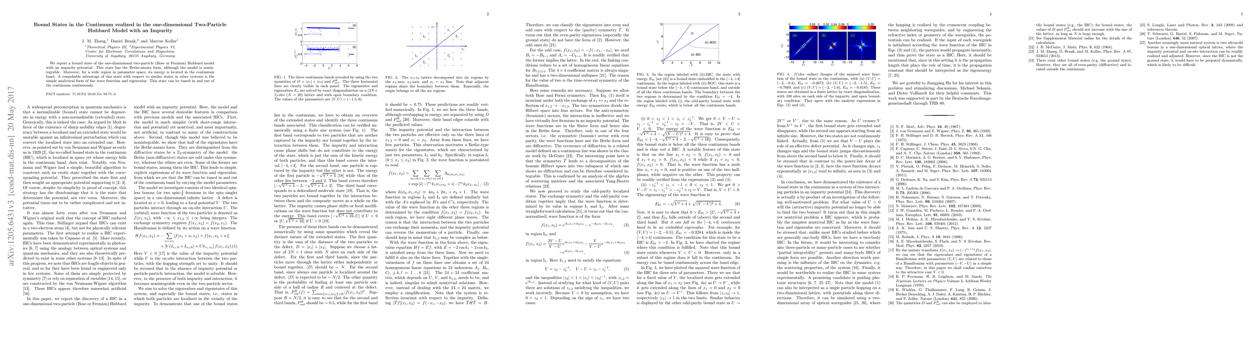We report a bound state of the one-dimensional two-particle (bosonic or fermionic) Hubbard model with an impurity potential. This state has the Bethe-ansatz form, although the model is nonintegrable. Moreover, for a wide region in parameter space, its energy is located in the continuum band. A remarkable advantage of this state with respect to similar states in other systems is the simple analytical form of the wave function and eigenvalue. This state can be tuned in and out of the continuum continuously.