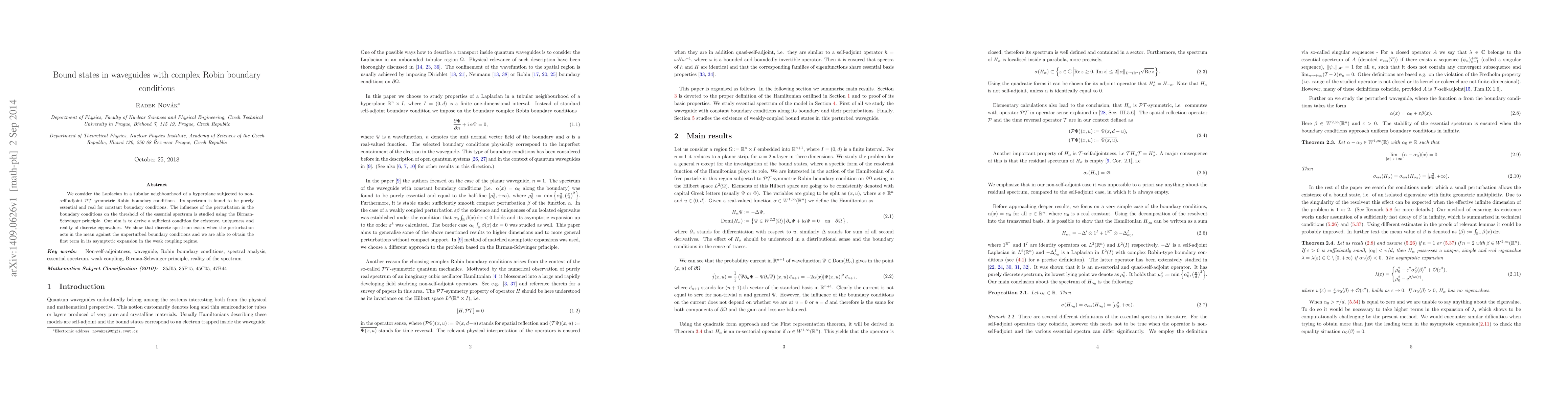 We consider the Laplacian in a tubular neighbourhood of a hyperplane subjected to non-self-adjoint $\mathcal{PT}$-symmetric Robin boundary conditions. Its spectrum is found to be purely essential and real for constant boundary conditions. The influence of the perturbation in the boundary conditions on the threshold of the essential spectrum is studied using the Birman-Schwinger principle. Our aim is to derive a sufficient condition for existence, uniqueness and reality of discrete eigenvalues. We show that discrete spectrum exists when the perturbation acts in the mean against the unperturbed boundary conditions and we are able to obtain the first term in its asymptotic expansion in the weak coupling regime.
