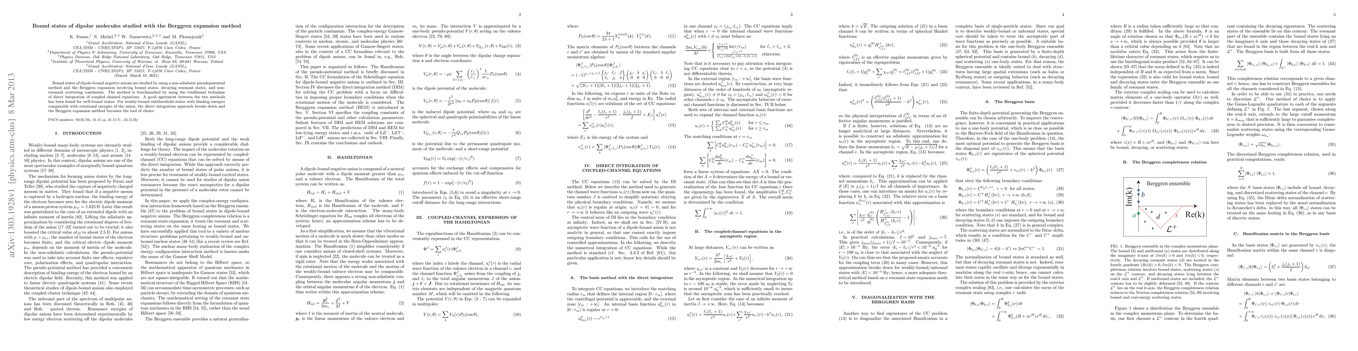 This paper investigates bound states of dipole-bound negative anions using a non-adiabatic pseudopotential method and the Berggren expansion, finding good agreement with traditional direct integration for well-bound states, but the Berggren expansion is more effective for weakly-bound subthreshold states.