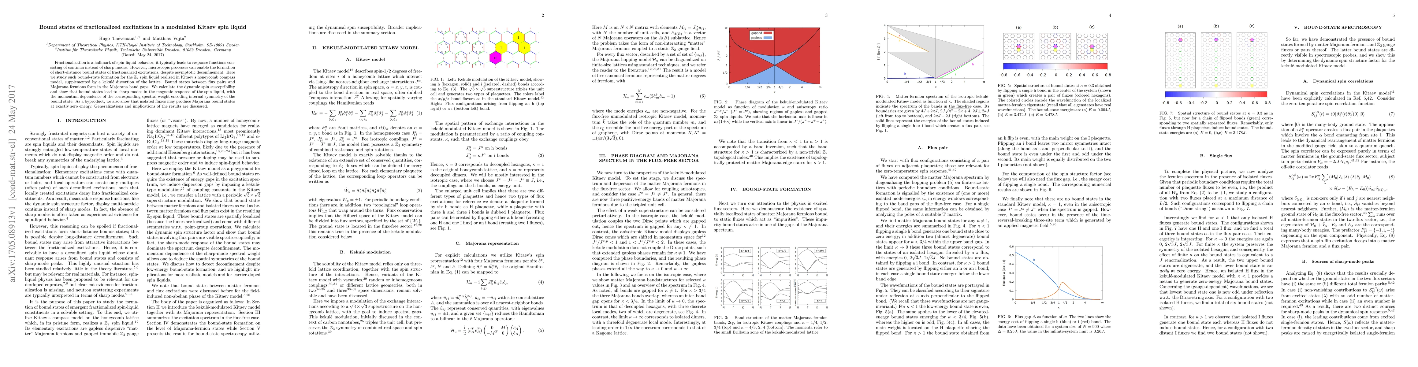 Fractionalization is a hallmark of spin-liquid behavior; it typically leads to response functions consisting of continua instead of sharp modes. However, microscopic processes can enable the formation of short-distance bound states of fractionalized excitations, despite asymptotic deconfinement. Here we study such bound-state formation for the $Z_2$ spin liquid realized in Kitaev's honeycomb compass model, supplemented by a kekule distortion of the lattice. Bound states between flux pairs and Majorana fermions form in the Majorana band gaps. We calculate the dynamic spin susceptibility and show that bound states lead to sharp modes in the magnetic response of the spin liquid, with the momentum dependence of the corresponding spectral weight encoding internal symmetry of the bound state. As a byproduct, we also show that isolated fluxes may produce Majorana bound states at exactly zero energy. Generalizations and implications of the results are discussed.