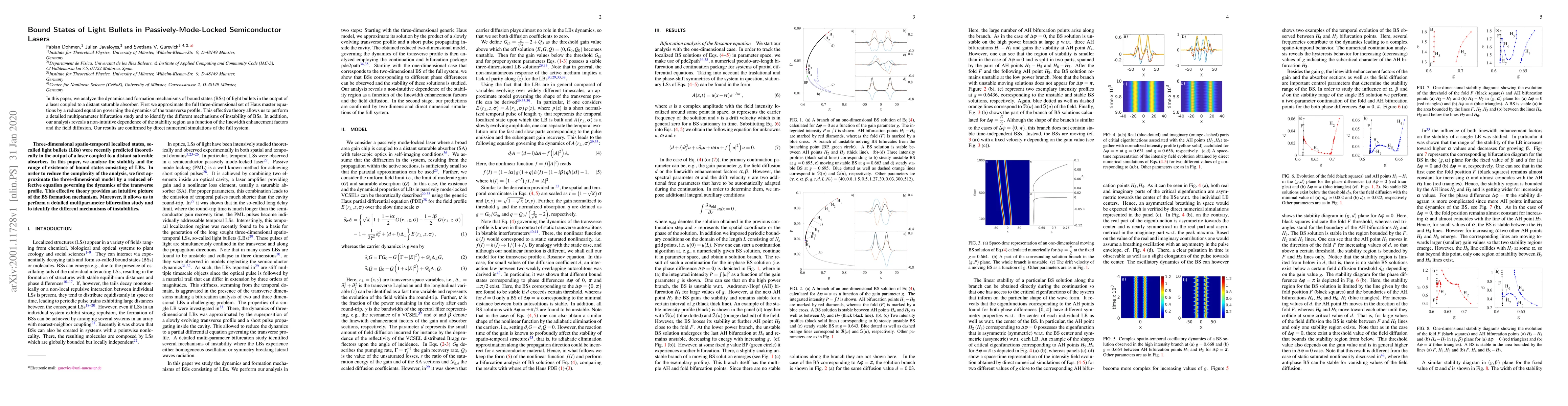 Researchers analyzed the dynamics of bound states in light bullets from a laser coupled to a saturable absorber, identifying mechanisms of instability and non-intuitive stability regions influenced by linewidth enhancement factors and field diffusion.