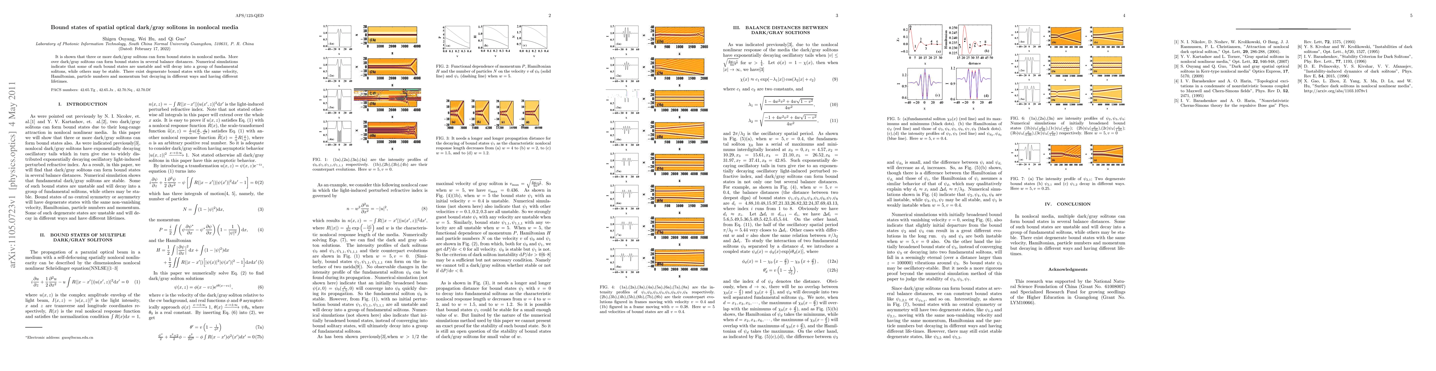 It is shown that three or more dark/gray solitons can form bound states in nonlocal media. More over dark/gray solitons can form bound states in several balance distances. Numerical simulations indicate that some of such bound states are unstable and will decay into a group of fundamental solitons, while others may be stable. There exist degenerate bound states with the same velocity, Hamiltonian, particle numbers and momentum but decaying in different ways and having different lifetimes.