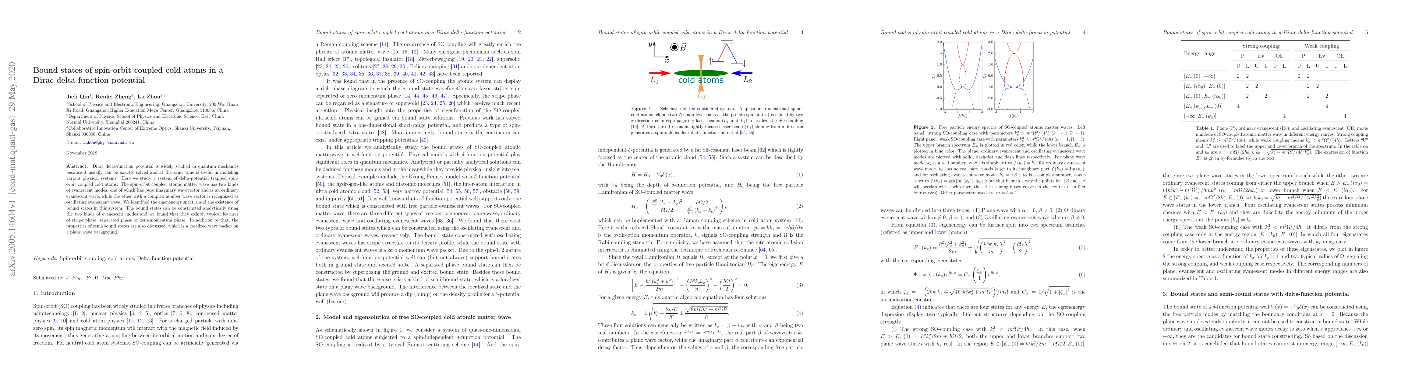 This paper investigates the bound states of spin-orbit coupled cold atoms trapped in a Dirac delta-function potential, identifying the eigenenergy spectra and the existence of bound states. The study reveals distinct phases and properties of semi-bound states, characterized by evanescent modes and localized wave packets.