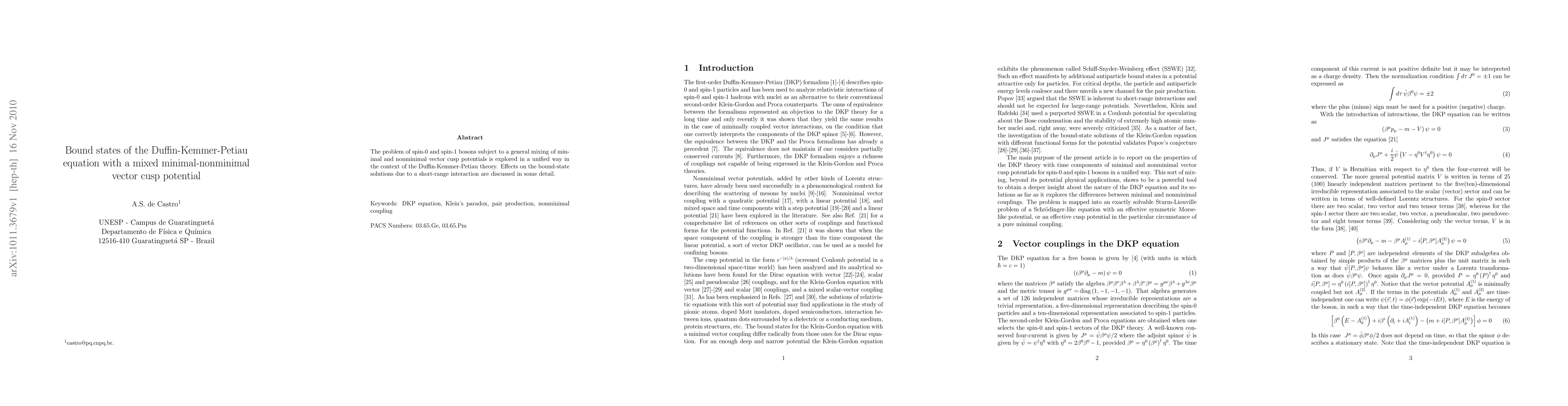 The problem of spin-0 and spin-1 bosons subject to a general mixing of minimal and nonminimal vector cusp potentials is explored in a unified way in the context of the Duffin-Kemmer-Petiau theory. Effects on the bound-state solutions due to a short-range interaction are discussed in some detail.