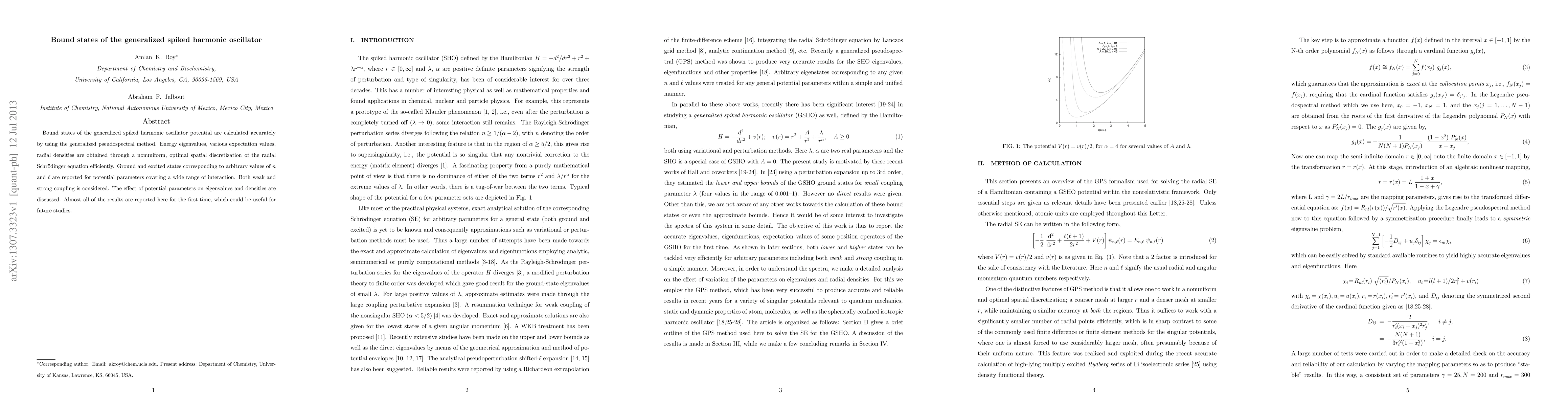 This paper calculates bound states for the generalized spiked harmonic oscillator using the generalized pseudospectral method, reporting energy eigenvalues and densities for a wide range of potential parameters. Almost all results are new and could aid future research.
