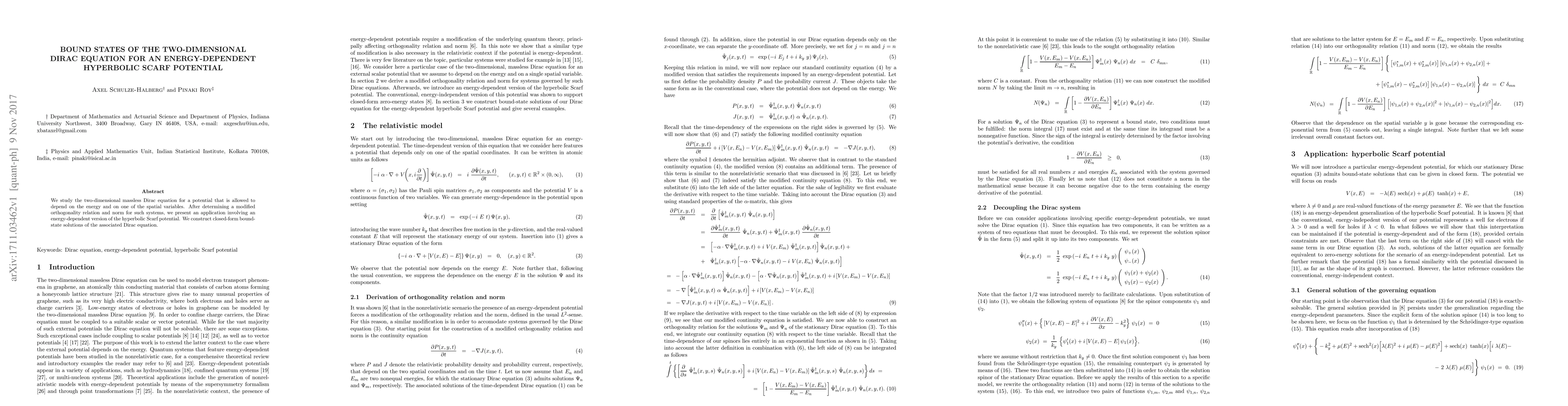 We study the two-dimensional massless Dirac equation for a potential that is allowed to depend on the energy and on one of the spatial variables. After determining a modified orthogonality relation and norm for such systems, we present an application involving an energy-dependent version of the hyperbolic Scarf potential. We construct closed-form bound state solutions of the associated Dirac equation.