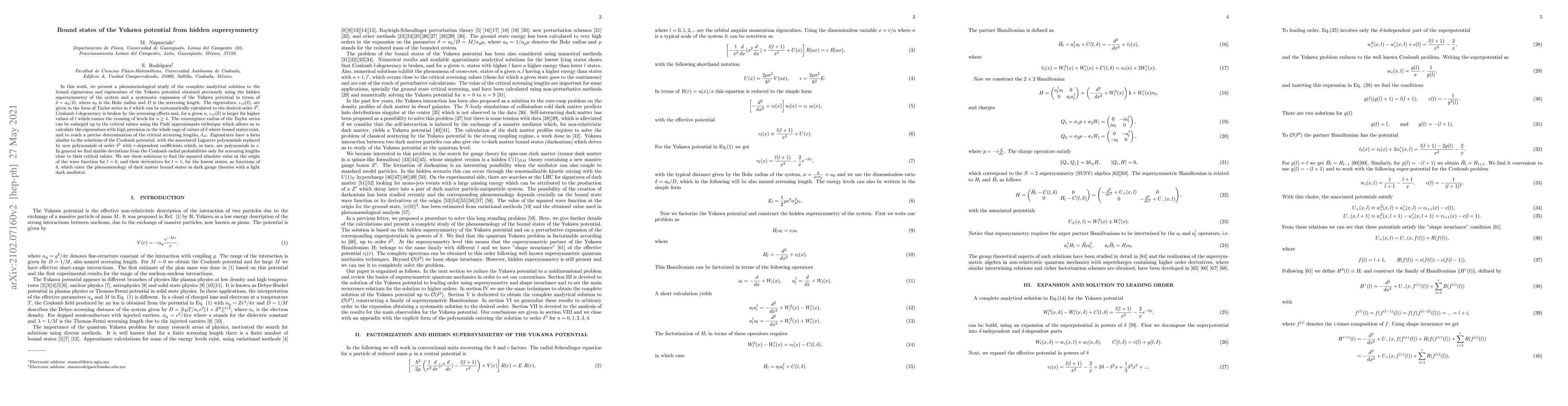 Researchers study bound states of the Yukawa potential with hidden supersymmetry, finding that screening effects break Coulomb l-degeneracy and can be precisely calculated using Taylor series expansions and Padé approximants.