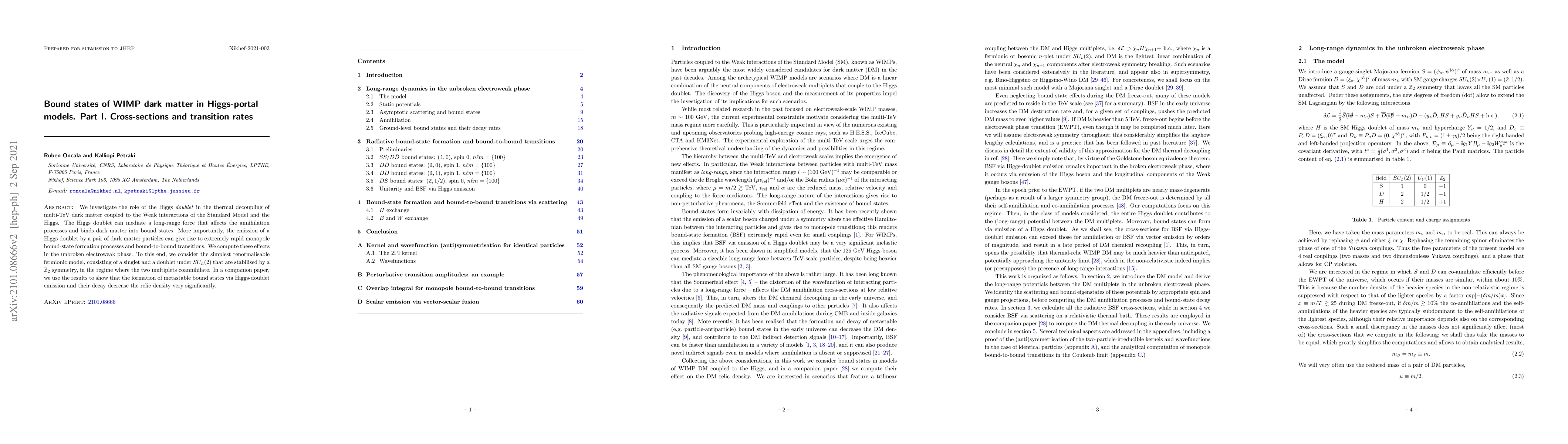 We investigate the role of the Higgs \emph{doublet} in the thermal decoupling of multi-TeV dark matter coupled to the Weak interactions of the Standard Model and the Higgs. The Higgs doublet can mediate a long-range force that affects the annihilation processes and binds dark matter into bound states. More importantly, the emission of a Higgs doublet by a pair of dark matter particles can give rise to extremely rapid monopole bound-state formation processes and bound-to-bound transitions. We compute these effects in the unbroken electroweak phase. To this end, we consider the simplest renormalisable fermionic model, consisting of a singlet and a doublet under $SU_{L}(2)$ that are stabilised by a $\mathbb{Z}_2$ symmetry, in the regime where the two multiplets coannihilate. In a companion paper, we use the results to show that the formation of metastable bound states via Higgs-doublet emission and their decay decrease the relic density very significantly.