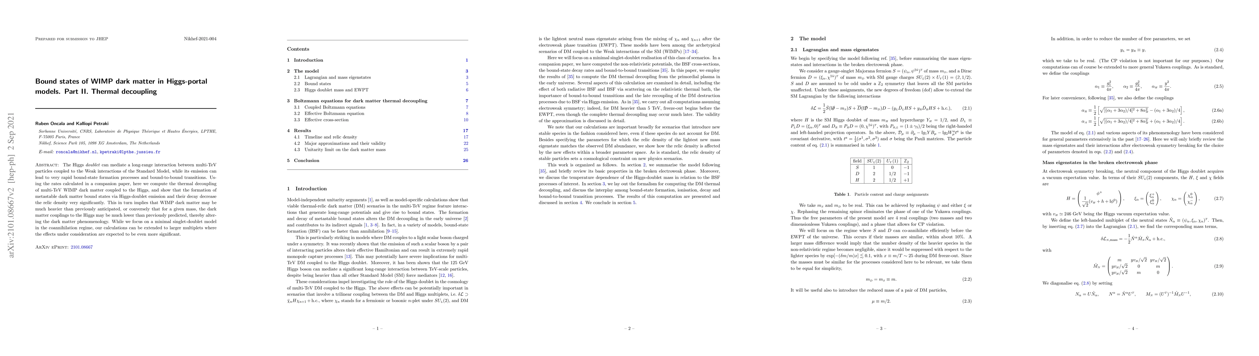 This paper investigates the thermal decoupling of multi-TeV WIMP dark matter in Higgs-portal models, revealing that bound-state formation and decay processes significantly reduce relic density. This suggests heavier WIMPs or lower Higgs couplings than previously thought, impacting dark matter phenomenology.