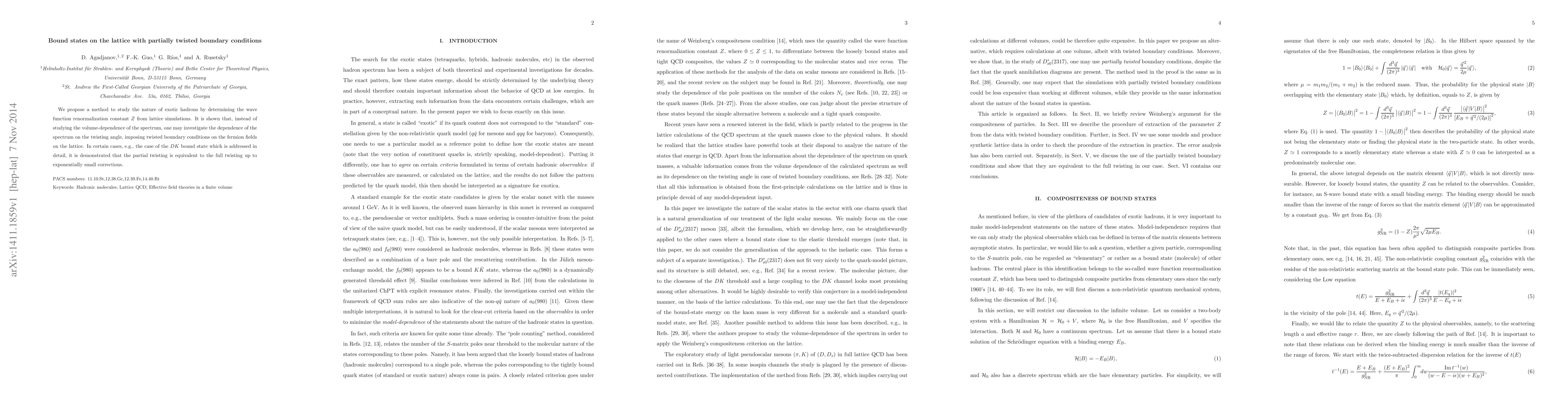 This paper proposes a new method for studying exotic hadrons using lattice simulations with partially twisted boundary conditions, showing that this approach can determine the wave function renormalization constant $Z$ and is equivalent to full twisting for certain bound states like $DK$ up to small corrections.