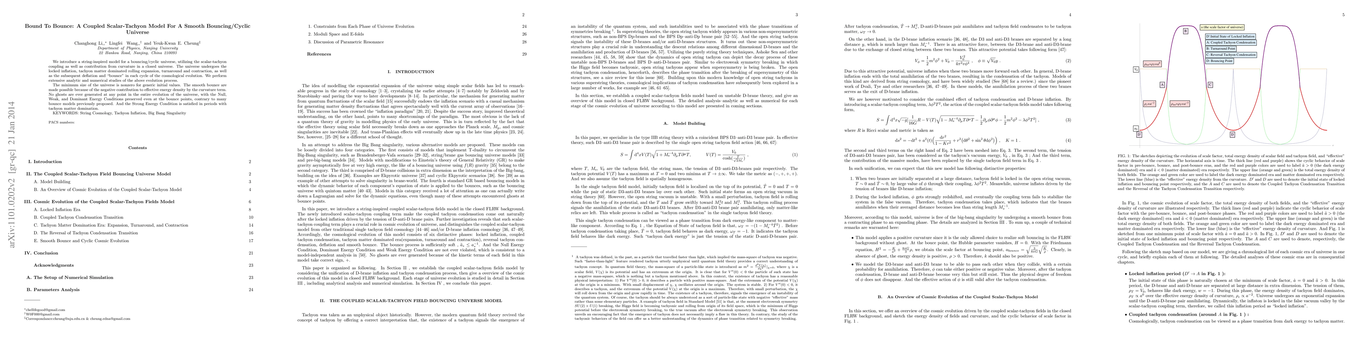This paper proposes a string-inspired model for a smooth bouncing/cyclic universe driven by a scalar-tachyon coupling and curvature contribution. The model avoids ghost states and maintains energy conditions, ensuring a smooth bounce without violating physical constraints.