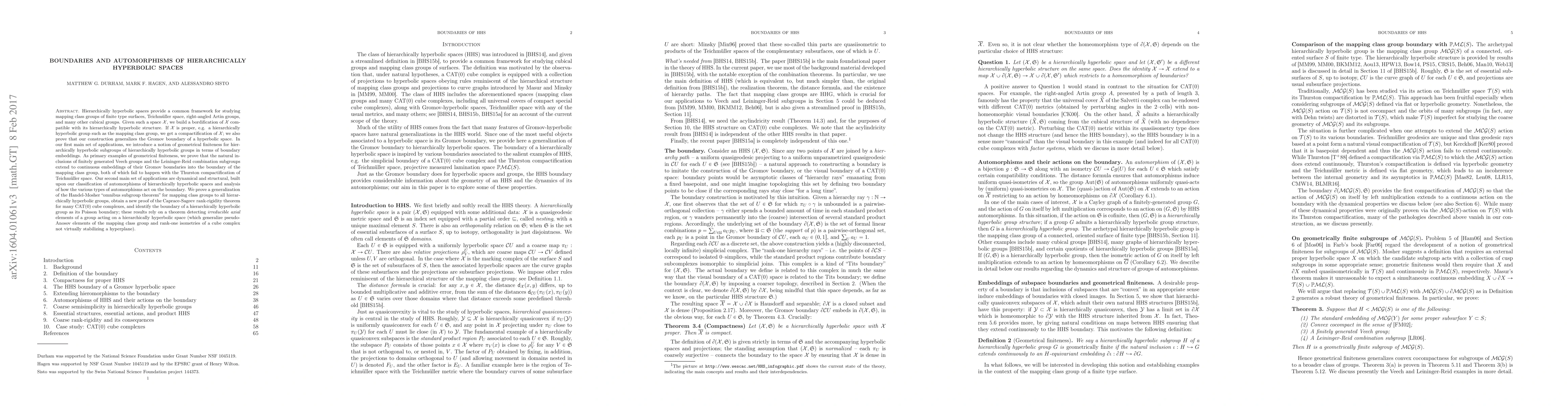 The paper introduces a bordification for hierarchically hyperbolic spaces, generalizes the Gromov boundary, and establishes a notion of geometrical finiteness for subgroups, along with a classification of automorphisms.