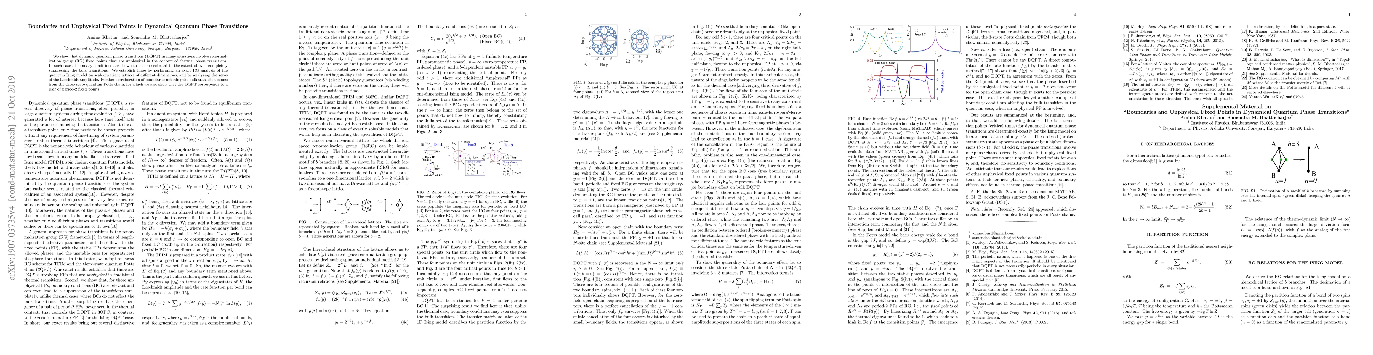 This paper demonstrates that dynamic quantum phase transitions often involve unphysical renormalization group fixed points, with boundary conditions playing a crucial role in either enhancing or suppressing the bulk transitions. The findings are supported by exact RG analysis of the quantum Ising model and the three-state quantum Potts chain.