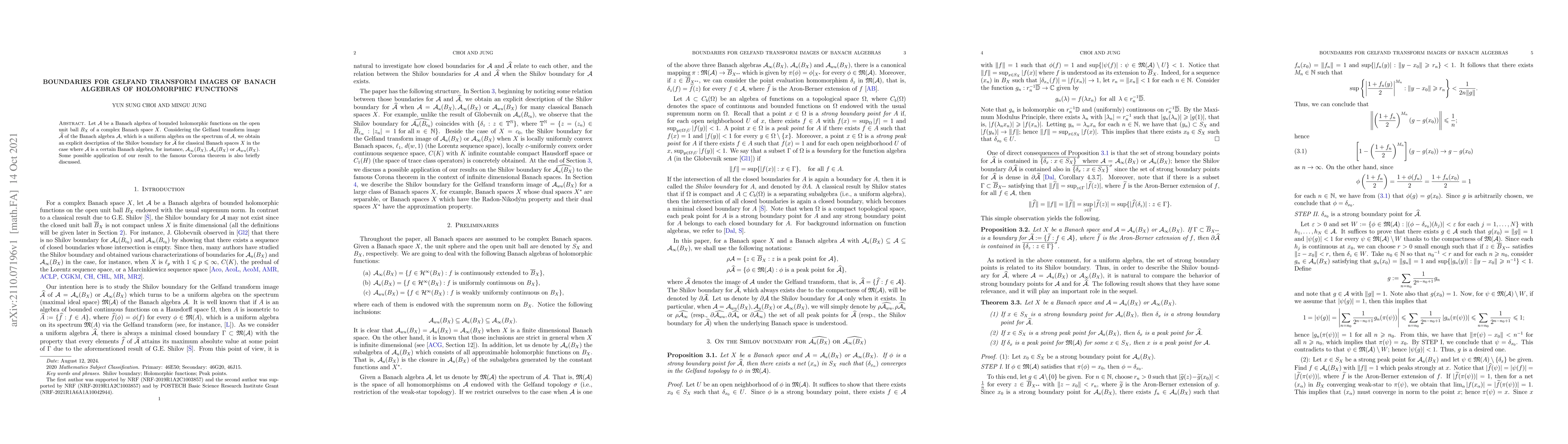 Let $\mathcal{A}$ be a Banach algebra of bounded holomorphic functions on the open unit ball $B_X$ of a complex Banach space $X$. Considering the Gelfand transform image $\widehat{\mathcal{A}}$ of the Banach algebra $\mathcal{A}$, which is a uniform algebra on the spectrum of $\mathcal{A}$, we obtain an explicit description of the Shilov boundary for $\widehat{\mathcal{A}}$ for classical Banach spaces $X$ in the case where $\mathcal{A}$ is a certain Banach algebra, for instance, $\mathcal{A}_\infty (B_X)$, $\mathcal{A}_u (B_X)$ or $\mathcal{A}_{wu} (B_X)$. Some possible application of our result to the famous Corona theorem is also briefly discussed.