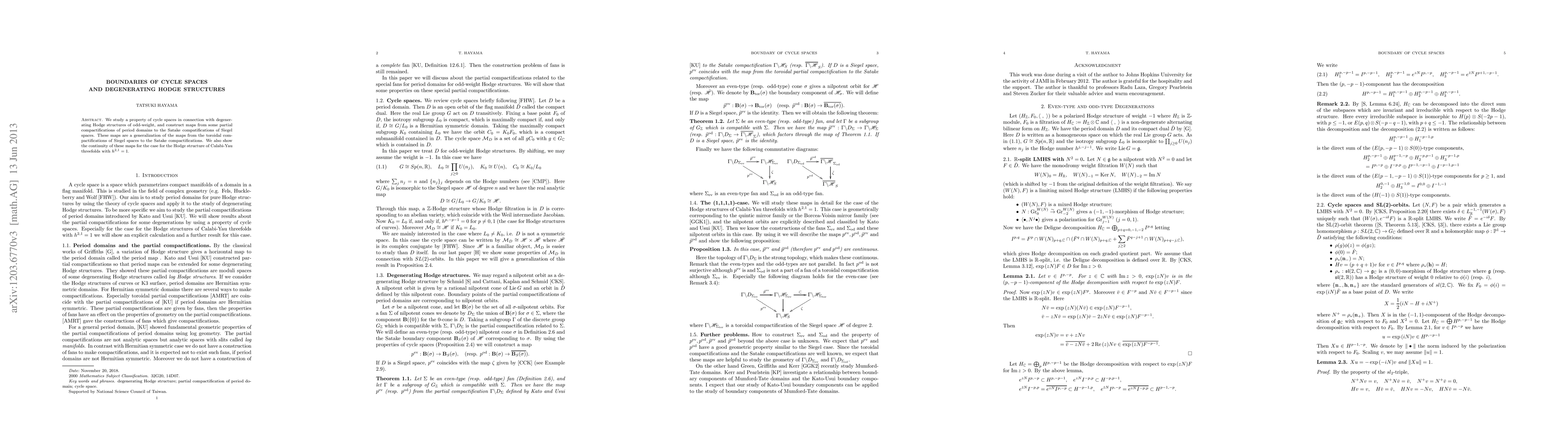 Summary: This paper investigates the relationship between cycle spaces and degenerating Hodge structures of odd weight, constructing new maps from partial compactifications of period domains to Satake compactifications of Siegel spaces, and proves their continuity for Calabi-Yau threefolds with a specific Hodge structure.