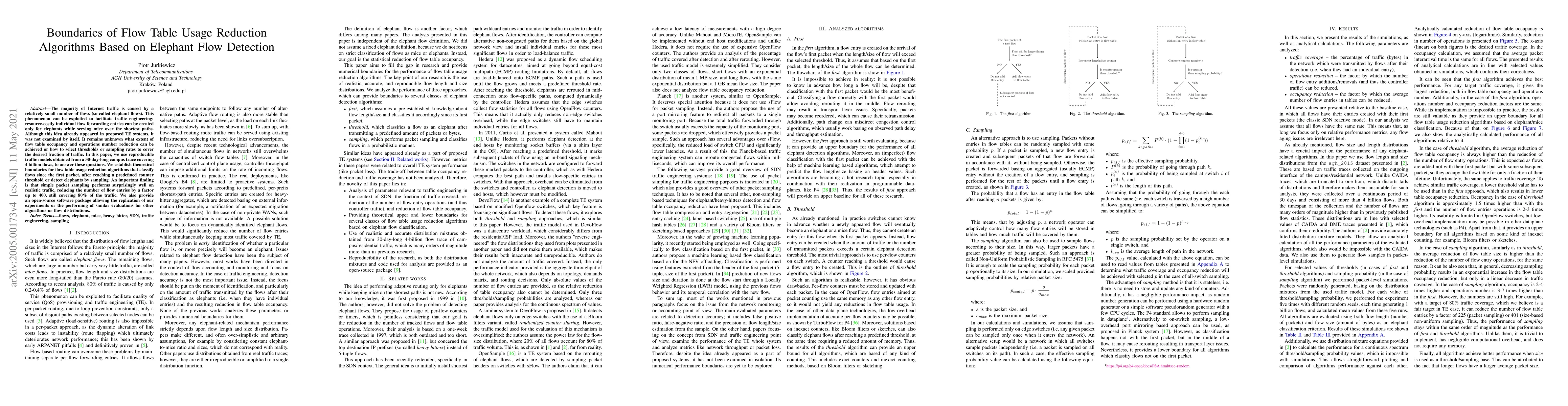 The majority of Internet traffic is caused by a relatively small number of flows (so-called elephant flows). This phenomenon can be exploited to facilitate traffic engineering: resource-costly individual flow forwarding entries can be created only for elephants while serving mice over the shortest paths. Although this idea already appeared in proposed TE systems, it was not examined by itself. It remains unknown what extent of flow table occupancy and operations number reduction can be achieved or how to select thresholds or sampling rates to cover the desired fraction of traffic. In this paper, we use reproducible traffic models obtained from a 30-day-long campus trace covering 4 billion flows, to answer these questions. We establish theoretical boundaries for flow table usage reduction algorithms that classify flows since the first packet, after reaching a predefined counter threshold or detect elephants by sampling. An important finding is that simple packet sampling performs surprisingly well on realistic traffic, reducing the number of flow entries by a factor up to 400, still covering 80% of the traffic. We also provide an open-source software package allowing the replication of our experiments or the performing of similar evaluations for other algorithms or flow distributions.