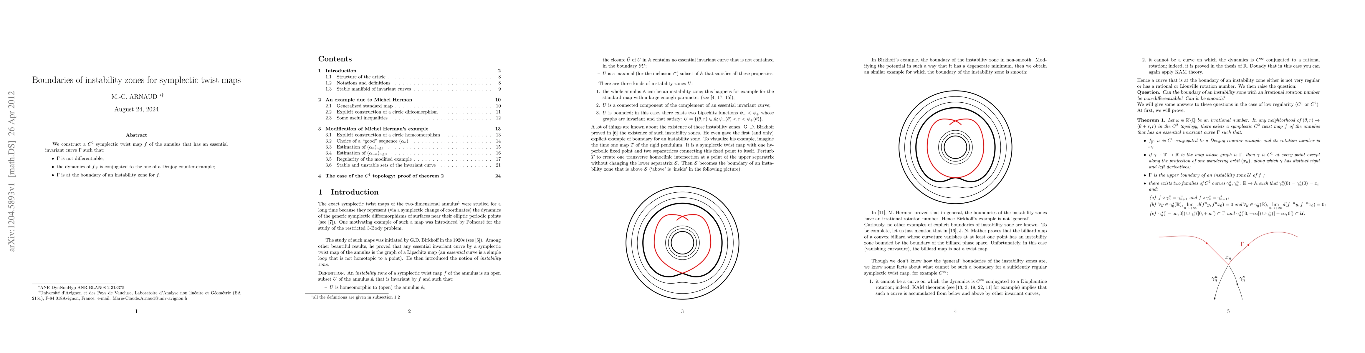 This paper constructs a $C^2$ symplectic twist map with an essential invariant curve that is not differentiable, exhibiting dynamics conjugated to a Denjoy counter-example, and lies at the boundary of an instability zone for the map. The study highlights the intricate dynamics near the boundary of such instability zones.