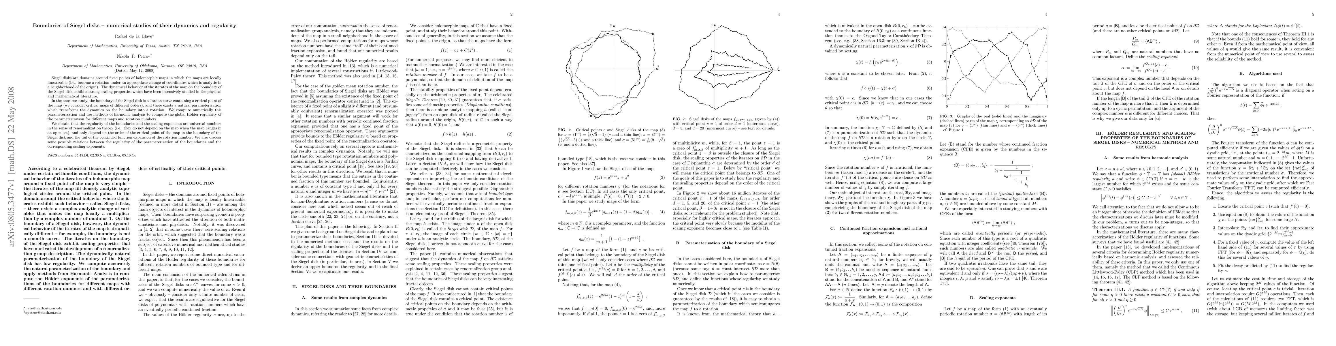 Siegel disks are domains around fixed points of holomorphic maps in which the maps are locally linearizable (i.e., become a rotation under an appropriate change of coordinates which is analytic in a neighborhood of the origin). The dynamical behavior of the iterates of the map on the boundary of the Siegel disk exhibits strong scaling properties which have been intensively studied in the physical and mathematical literature. In the cases we study, the boundary of the Siegel disk is a Jordan curve containing a critical point of the map (we consider critical maps of different orders), and there exists a natural parameterization which transforms the dynamics on the boundary into a rotation. We compute numerically this parameterization and use methods of harmonic analysis to compute the global Holder regularity of the parameterization for different maps and rotation numbers. We obtain that the regularity of the boundaries and the scaling exponents are universal numbers in the sense of renormalization theory (i.e., they do not depend on the map when the map ranges in an open set), and only depend on the order of the critical point of the map in the boundary of the Siegel disk and the tail of the continued function expansion of the rotation number. We also discuss some possible relations between the regularity of the parameterization of the boundaries and the corresponding scaling exponents.