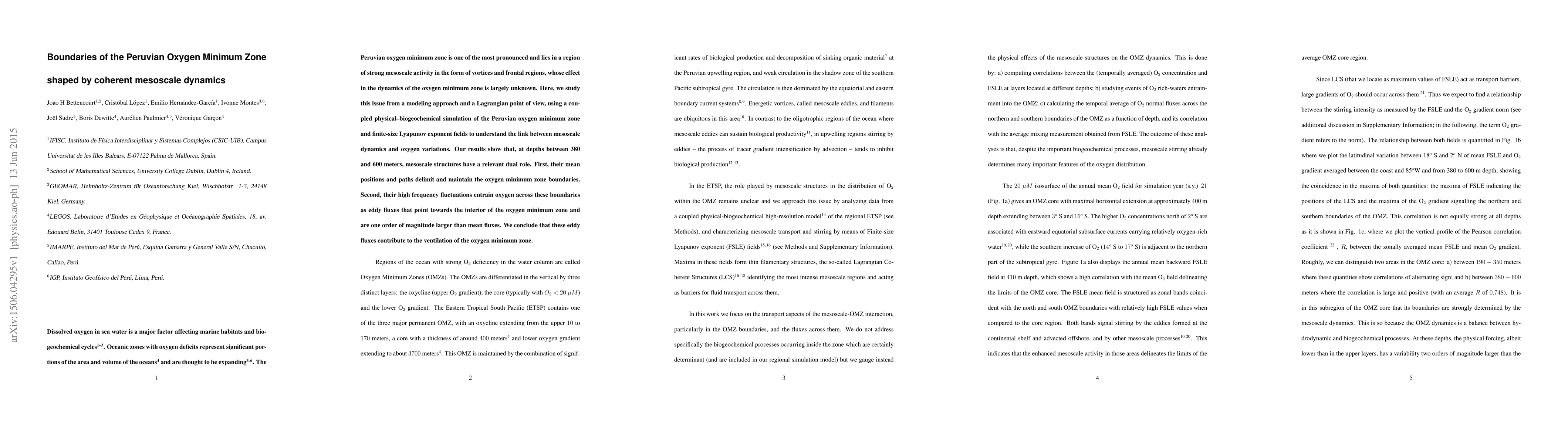 This study uses modeling and Lagrangian analysis to investigate how mesoscale dynamics shape the Peruvian oxygen minimum zone, finding that mesoscale structures both define its boundaries and facilitate significant oxygen fluxes into the zone, enhancing its ventilation.