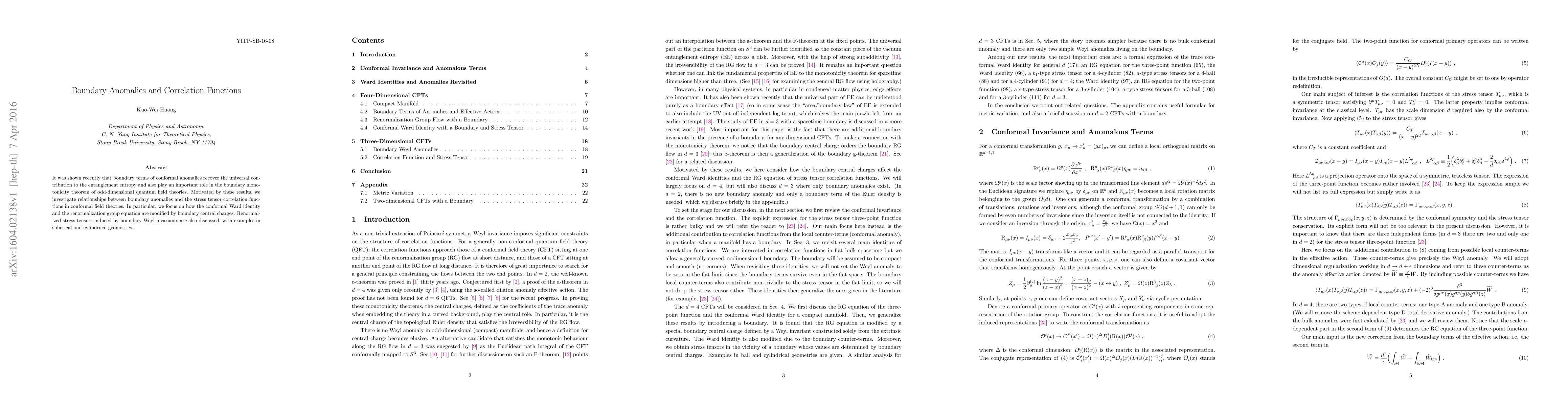This paper explores the relationship between boundary anomalies and correlation functions in conformal field theories, highlighting how boundary central charges modify the conformal Ward identity and renormalization group equation. It also discusses renormalized stress tensors in spherical and cylindrical geometries.