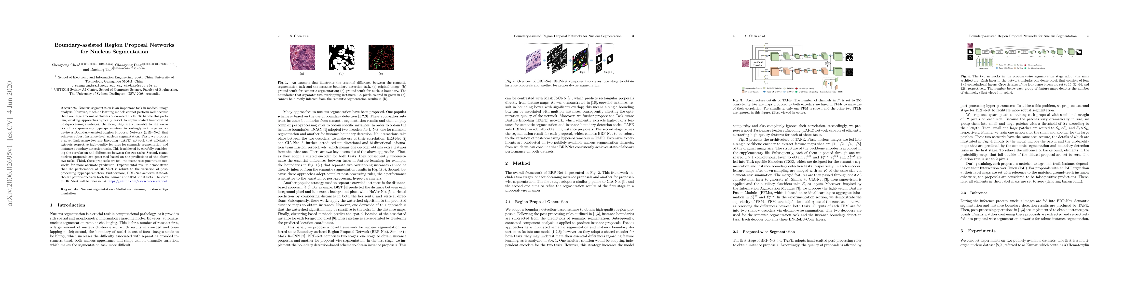 This paper introduces a Boundary-assisted Region Proposal Network (BRP-Net) for robust nucleus segmentation in medical images, addressing challenges posed by crowded nuclei. The proposed Task-aware Feature Encoding (TAFE) network extracts features for both semantic segmentation and boundary detection, generating accurate nucleus proposals that improve segmentation performance.