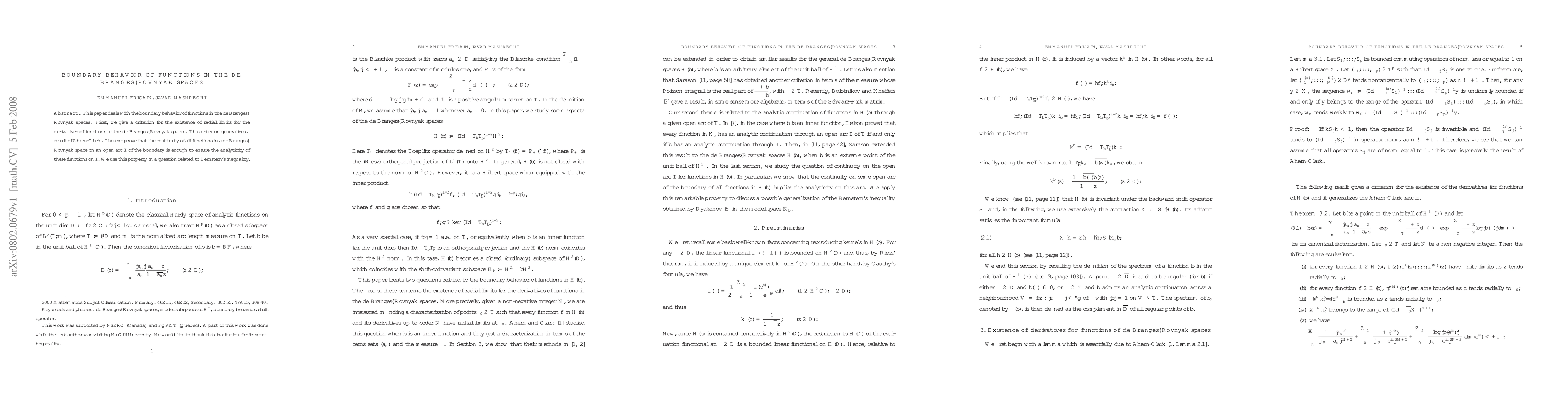 This paper establishes a criterion for the existence of radial limits for derivatives in de Branges-Rovnyak spaces, generalizing a prior result. It also proves that continuity on an open arc of the boundary guarantees analyticity, which is applied to a Bernstein's inequality question.