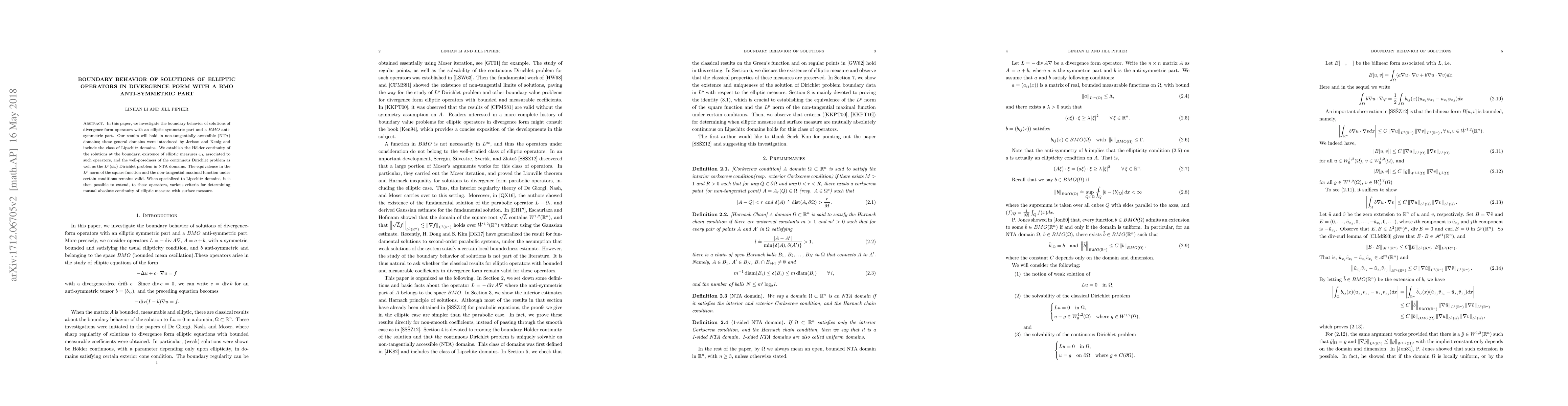 This paper examines the boundary behavior of solutions to divergence-form elliptic operators with a BMO anti-symmetric part, establishing H\"older continuity and the existence of associated elliptic measures in non-tangentially accessible domains. It also proves the well-posedness of the Dirichlet problem and extends criteria for mutual absolute continuity of elliptic measures with surface measure in Lipschitz domains.