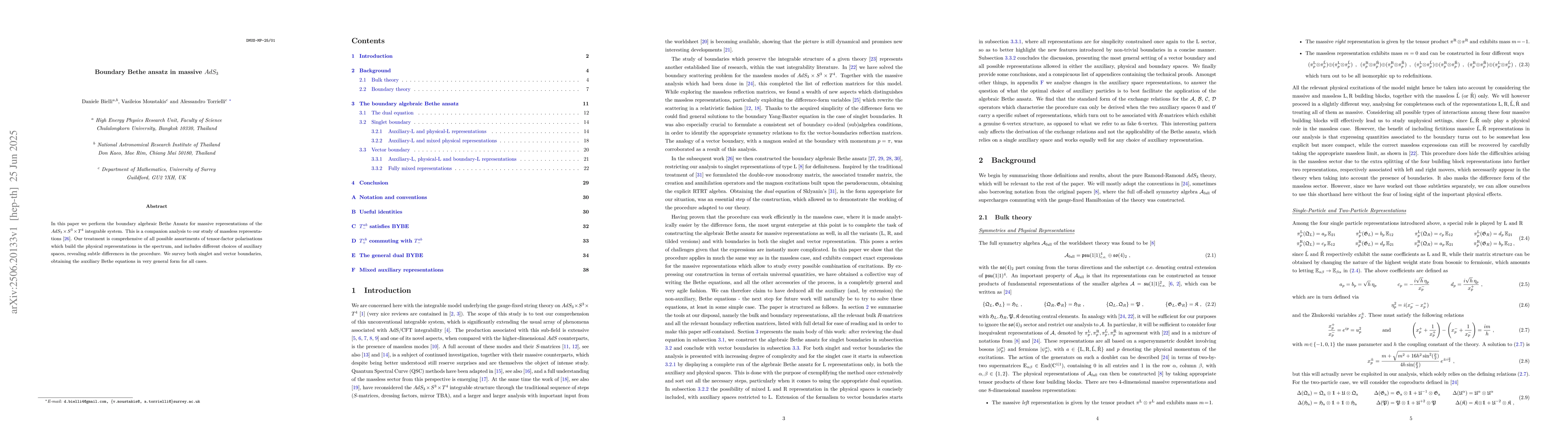 In this paper we perform the boundary algebraic Bethe Ansatz for massive representations of the $AdS_3 \times S^3 \times T^4$ integrable system. This is a companion analysis to our study of massless representations \cite{Bielli:2024bve}. Our treatment is comprehensive of all possible assortments of tensor-factor polarisations which build the physical representations in the spectrum, and includes different choices of auxiliary spaces, revealing subtle differences in the procedure. We survey both singlet and vector boundaries, obtaining the auxiliary Bethe equations in very general form for all cases.