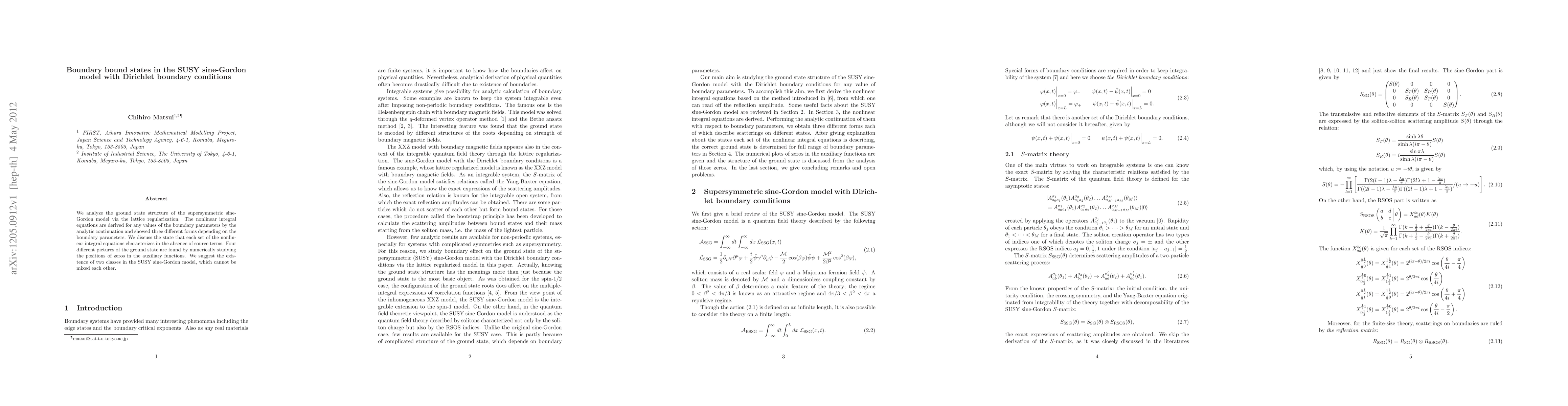This paper investigates the ground state structure of the supersymmetric sine-Gordon model using lattice regularization, deriving nonlinear integral equations for various boundary conditions. It identifies four distinct ground state pictures and proposes the existence of two non-interchangeable classes within the model.