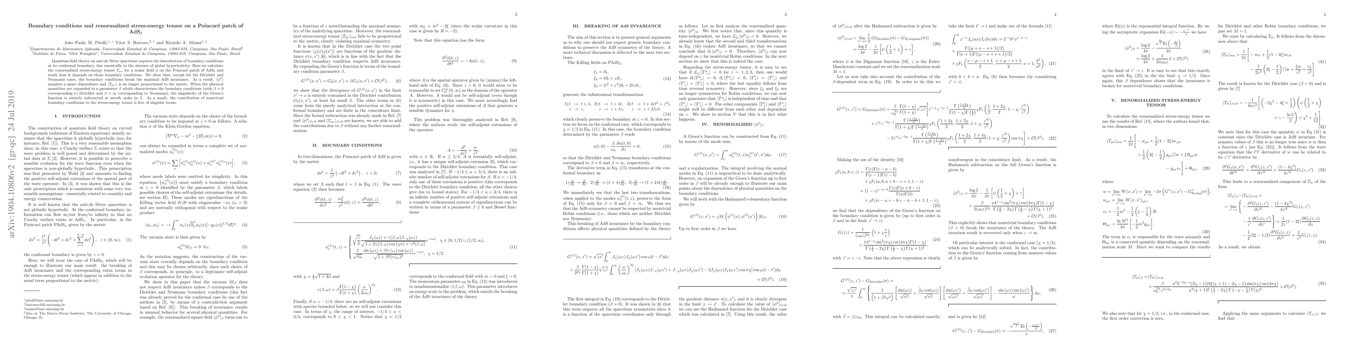 Quantum field theory on anti-de Sitter spacetime requires the introduction of boundary conditions at its conformal boundary, due essentially to the absence of global hyperbolicity. Here we calculate the renormalized stress-energy tensor $T_{\mu\nu}$ for a scalar field $\phi$ on the Poincar\'e patch of $\text{AdS}_2$ and study how it depends on those boundary conditions. We show that, except for the Dirichlet and Neumann cases, the boundary conditions break the maximal $\textrm{AdS}$ invariance. As a result, $\langle\phi^2\rangle$ acquires a space dependence and $\langle T_{\mu\nu}\rangle$ is no longer proportional to the metric. When the physical quantities are expanded in a parameter $\beta$ which characterizes the boundary conditions (with $\beta=0$ corresponding to Dirichlet and $\beta=\infty$ corresponding to Neumann), the singularity of the Green's function is entirely subtracted at zeroth order in $\beta$. As a result, the contribution of nontrivial boundary conditions to the stress-energy tensor is free of singular terms.