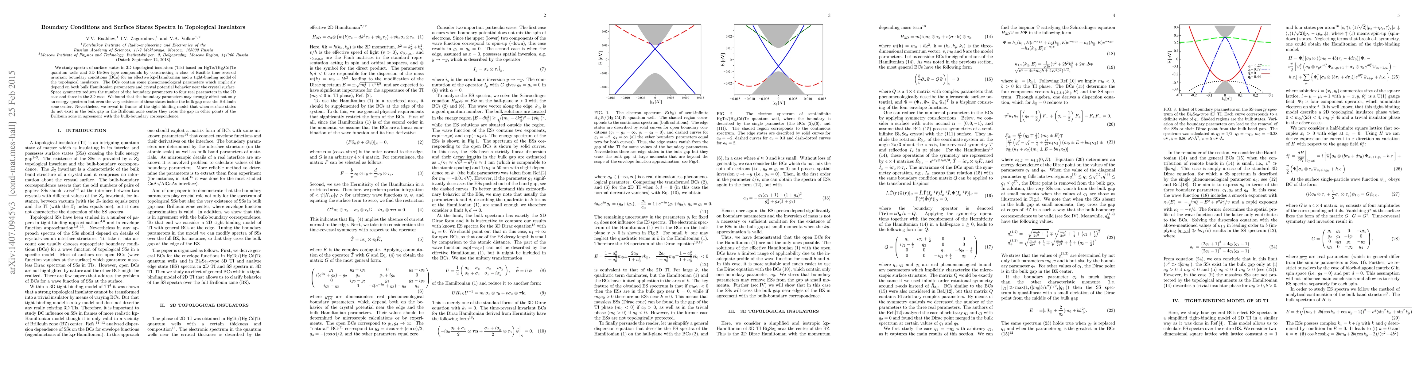 We study spectra of surface states in 2D topological insulators (TIs) based on HgTe/(Hg,Cd)Te quantum wells and 3D Bi$_2$Se$_3$-type compounds by constructing a class of feasible time-reversal invariant boundary conditions (BCs) for an effective ${\bf k}{\bf p}$-Hamiltonian and a tight-binding model of the topological insulators. The BCs contain some phenomenological parameters which implicitly depend on both bulk Hamiltonian parameters and crystal potential behavior near the crystal surface. Space symmetry reduces the number of the boundary parameters to four real parameters in the 2D case and three in the 3D case. We found that the boundary parameters may strongly affect not only an energy spectrum but even the very existence of these states inside the bulk gap near the Brillouin zone center. Nevertheless, we reveal in frames of the tight-binding model that when surface states do not exist in the bulk gap in the Brillouin zone center they cross the gap in other points of the Brillouin zone in agreement with the bulk-boundary correspondence.