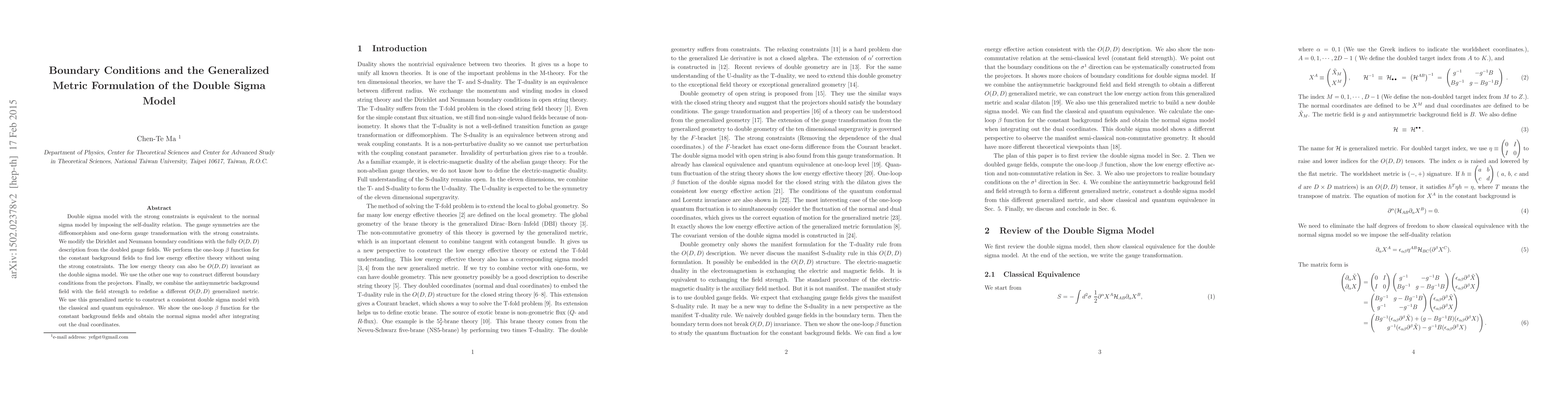 This paper investigates the equivalence between the double sigma model and the normal sigma model under strong constraints, modifying Dirichlet and Neumann boundary conditions with an $O(D, D)$ framework. It constructs a low energy effective theory through a one-loop $\beta$ function and shows classical and quantum equivalence via a generalized $O(D, D)$ metric.