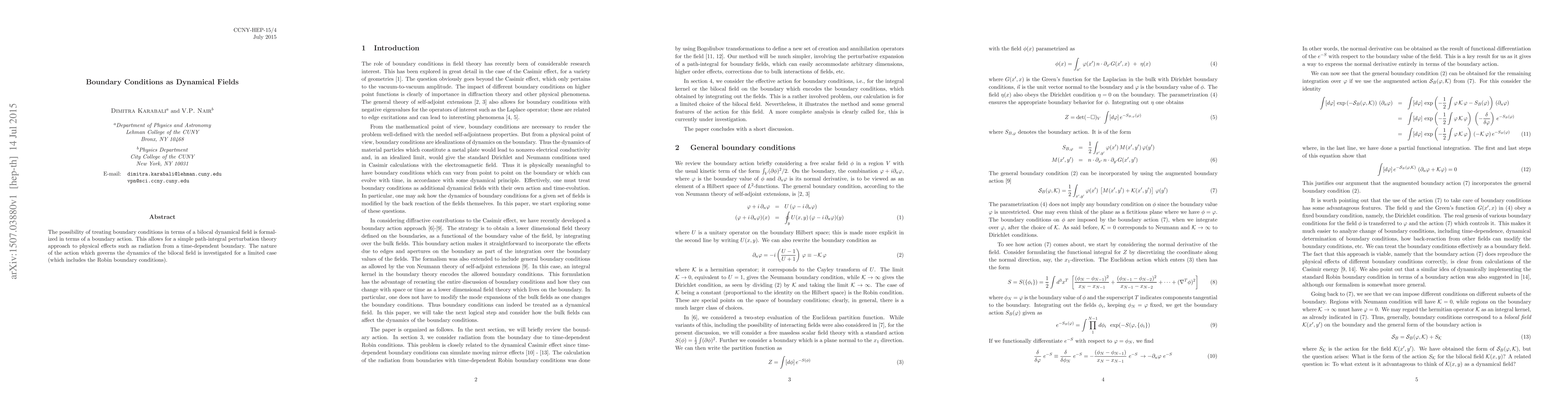 The possibility of treating boundary conditions in terms of a bilocal dynamical field is formalized in terms of a boundary action. This allows for a simple path-integral perturbation theory approach to physical effects such as radiation from a time-dependent boundary. The nature of the action which governs the dynamics of the bilocal field is investigated for a limited case (which includes the Robin boundary conditions).