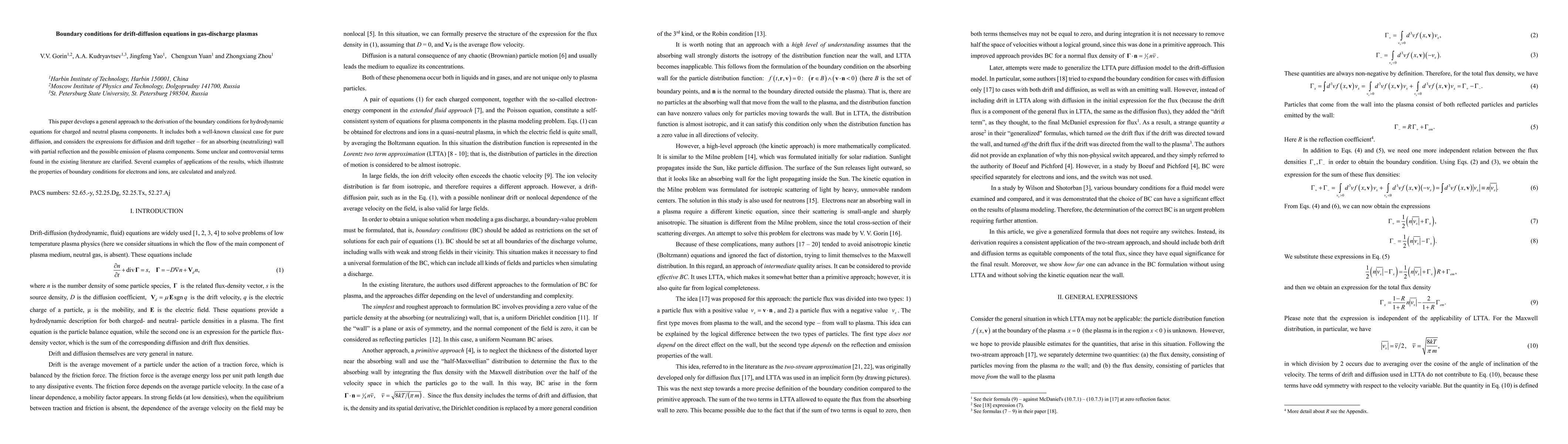 The study focuses on charging and neutral plasma components, offering insights into the properties of boundary conditions for electrons and ions, particularly for absorbing walls with partial reflection.