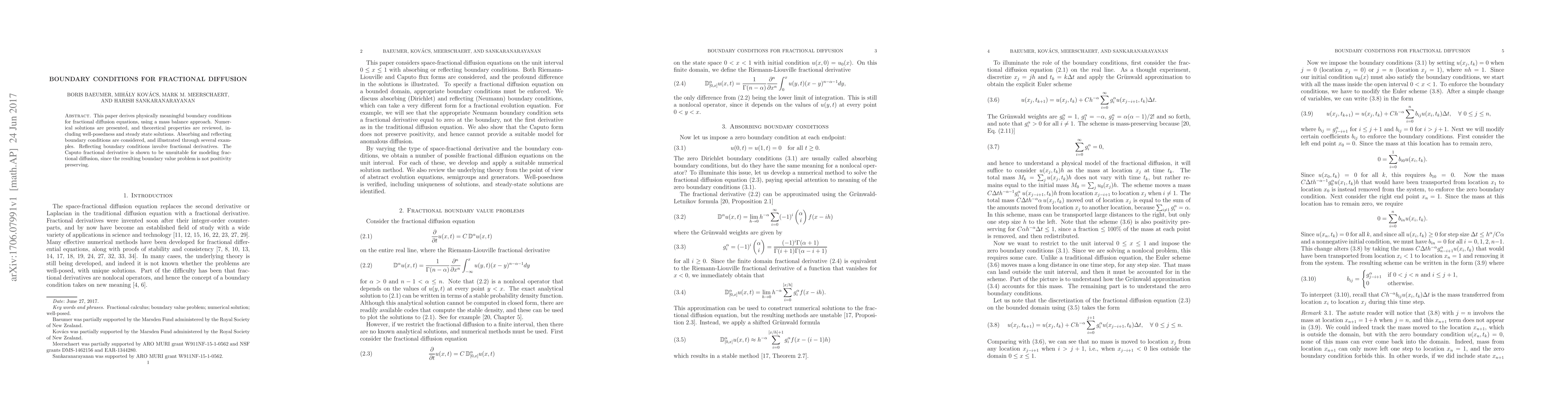 This paper develops physically meaningful boundary conditions for fractional diffusion equations using mass balance, focusing on absorbing and reflecting conditions, and finds that the Caputo derivative is unsuitable due to lack of positivity preservation. Numerical examples illustrate the theoretical properties and practical implications of these boundary conditions.
