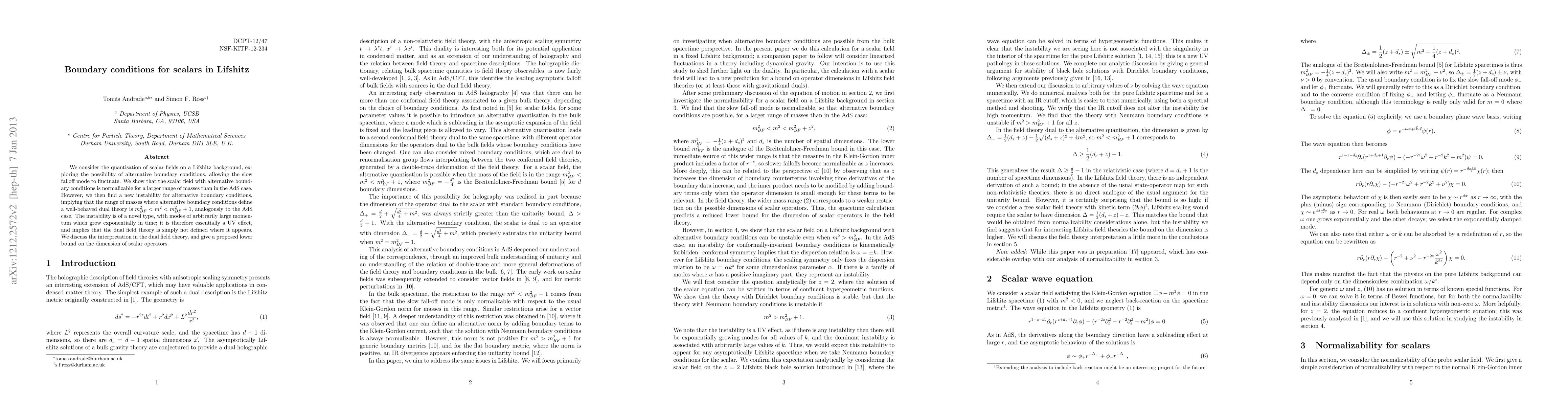 We consider the quantisation of scalar fields on a Lifshitz background, exploring the possibility of alternative boundary conditions, allowing the slow falloff mode to fluctuate. We show that the scalar field with alternative boundary conditions is normalizable for a larger range of masses than in the AdS case. However, we then find a new instability for alternative boundary conditions, implying that the range of masses where alternative boundary conditions define a well-behaved dual theory is $m_{BF}^2 < m^2 < m^2_{BF} +1$, analogously to the AdS case. The instability is of a novel type, with modes of arbitrarily large momentum which grow exponentially in time; it is therefore essentially a UV effect, and implies that the dual field theory is simply not defined where it appears. We discuss the interpretation in the dual field theory, and give a proposed lower bound on the dimension of scalar operators.