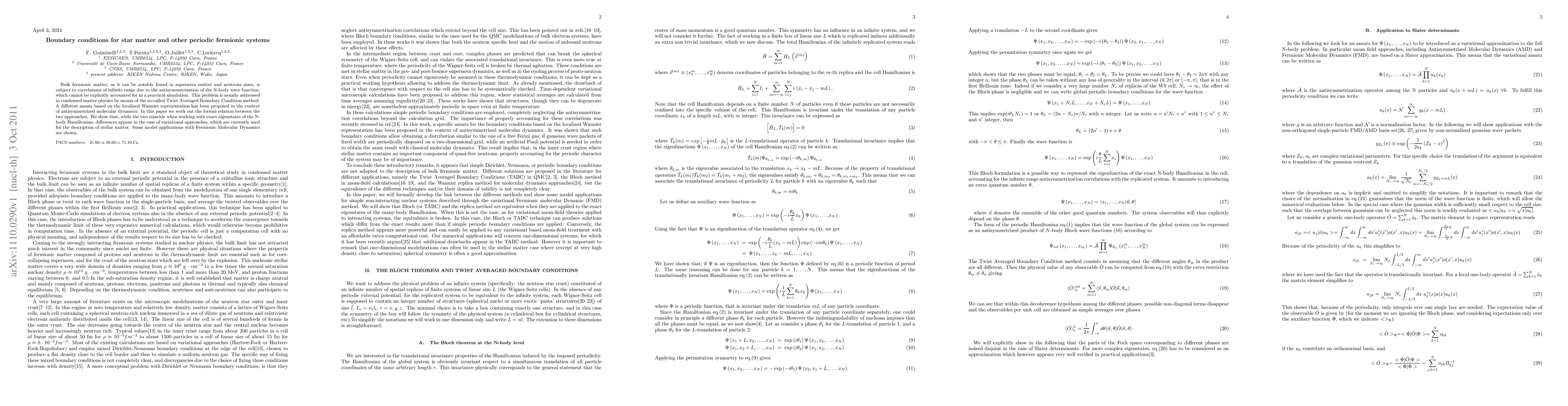 Bulk fermionic matter, as it can be notably found in supernova matter and neutrons stars, is subject to correlations of infinite range due to the antisymmetrisation of the N-body wave function, which cannot be explicitly accounted for in a practical simulation. This problem is usually addressed in condensed matter physics by means of the so-called Twist Averaged Boundary Condition method. A different ansatz based on the localized Wannier representation has been proposed in the context of antisymmetrized molecular dynamics. In this paper we work out the formal relation between the two approaches. We show that, while the two coincide when working with exact eigenstates of the N-body Hamiltonian, differences appear in the case of variational approaches, which are currently used for the description of stellar matter. Some model applications with Fermionic Molecular Dynamics are shown.