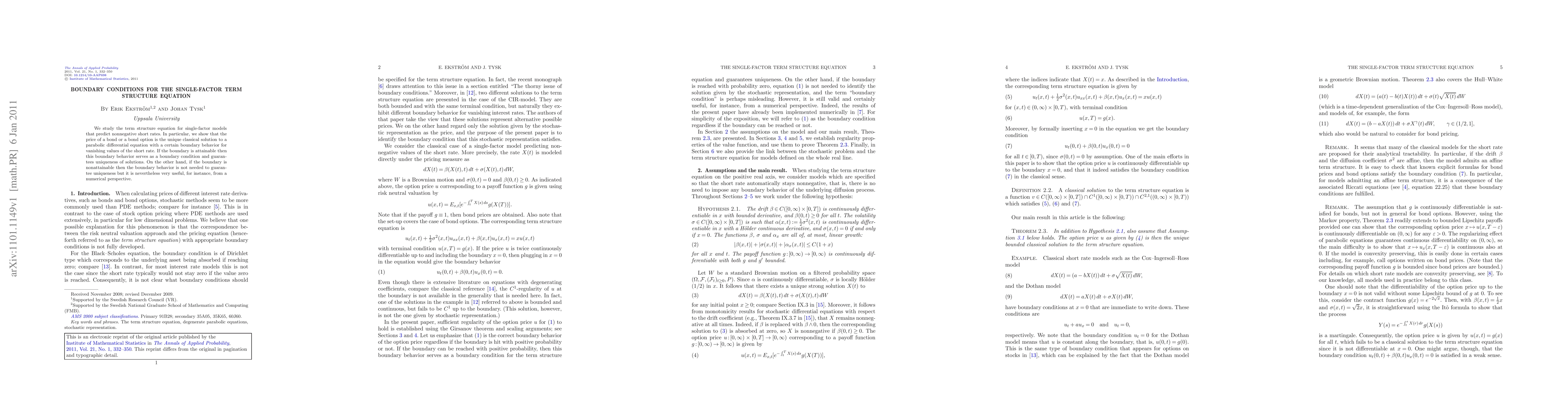 Researchers studied the term structure equation for single-factor models that predict nonnegative short rates, finding that a specific boundary behavior can guarantee uniqueness of solutions, even if it's not attainable.