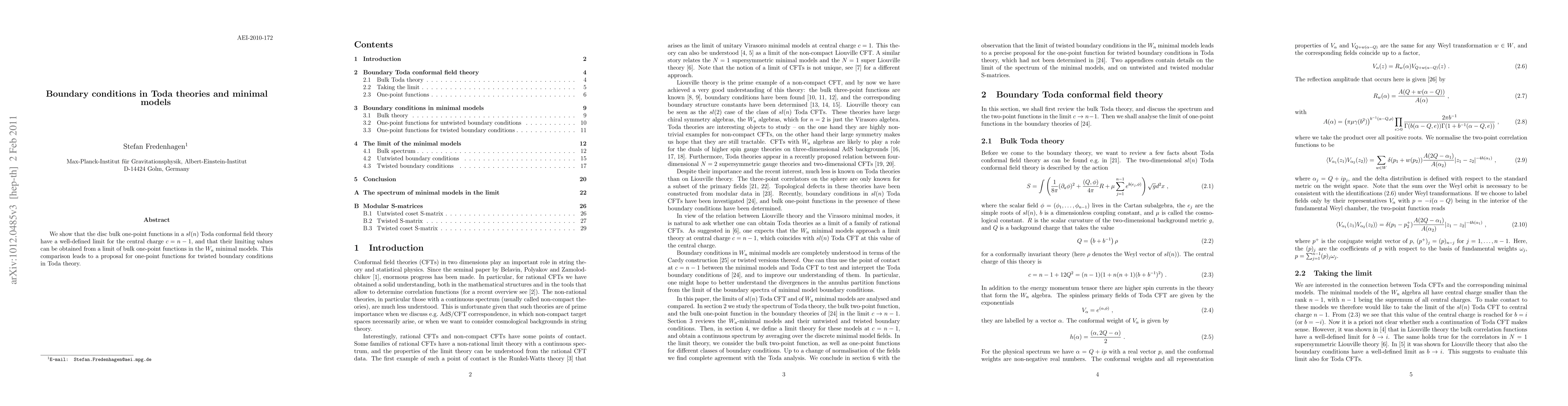 The paper demonstrates that sl(n) Toda conformal field theories have well-defined bulk one-point functions at c=n-1, and these limit values correspond to those in W_n minimal models, leading to a proposal for one-point functions under twisted boundary conditions in Toda theory.