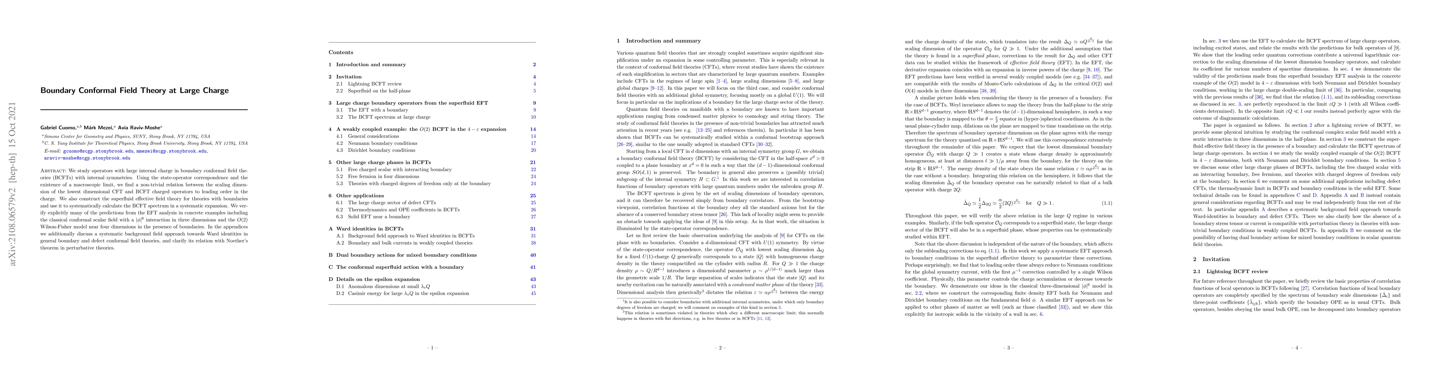 This paper investigates operators with large internal charge in boundary conformal field theories (BCFTs), establishing a non-trivial relation between the scaling dimension of charged operators and the lowest dimensional CFT operator. It constructs a superfluid effective field theory for BCFTs and verifies its predictions in specific examples, including the classical conformal scalar field and the $O(2)$ Wilson-Fisher model.