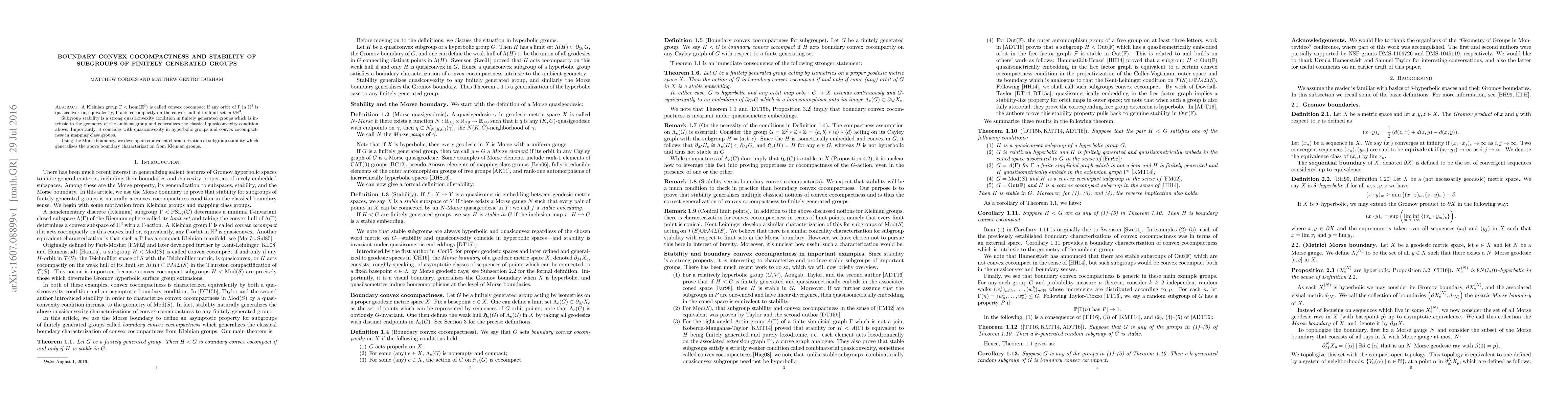 This paper explores the concept of convex cocompactness in Kleinian groups and introduces subgroup stability in finitely generated groups, showing that it generalizes quasiconvexity. The authors use the Morse boundary to provide an equivalent characterization of subgroup stability, extending the known boundary characterizations from Kleinian groups.